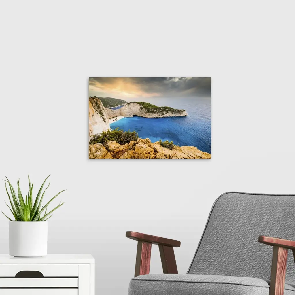 Navagio Beach With The Famous Wrecked Ship, Zante (Zakynthos), Greek Islands, Greece wall art for home and office decor. Discover canvas art prints, photos, mural, big canvas art and framed wall art in GreatBigCanvas.com's varied collections.