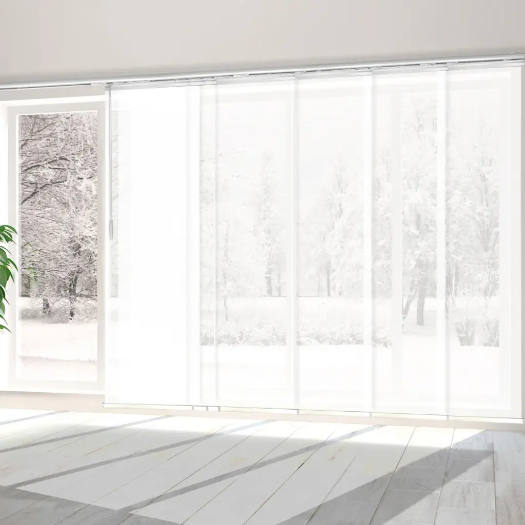Central Design Products is pleased to introduce a new innovative panel track that offers easy 2-way installation, adding an alluring style and refined touch to your home decor. The single rail design of the track is sleek, compact, and reduces the overall footprint and weight of the installation, eliminating bulky, intrusive window treatments. Adjusting the panel height is a breeze � simply trim the panel, re-attach the liner, and install the panel weight. Detailed instructions are included.The panel track also features a patented slider design, made with aluminum and fitted with bearings that allow for durable and smooth operation. The sliders are stacked closer together than conventional panel tracks, reducing light bleed coming from the gaps between panels. This track has endless uses from dividing rooms, garages, offices, and closets to decorating windows and patios. Available in larger sizes including 8, 10, and 12 panels. Extends from 110-153� wide. Each panel measures 23.5" wide and 91.5" tall, with a total installation height of 94" (includes the 2.5" rail track). The track can be wall or ceiling mounted. The panels can stack on the left or the right. The clearance from the wall is extendable from 1.25� to 3.25� and projection from the wall is extendable from 3� to 4.25�. Navajo White panel is made from 100% Polyester, with a light filtering shade that blocks 50% of the light.