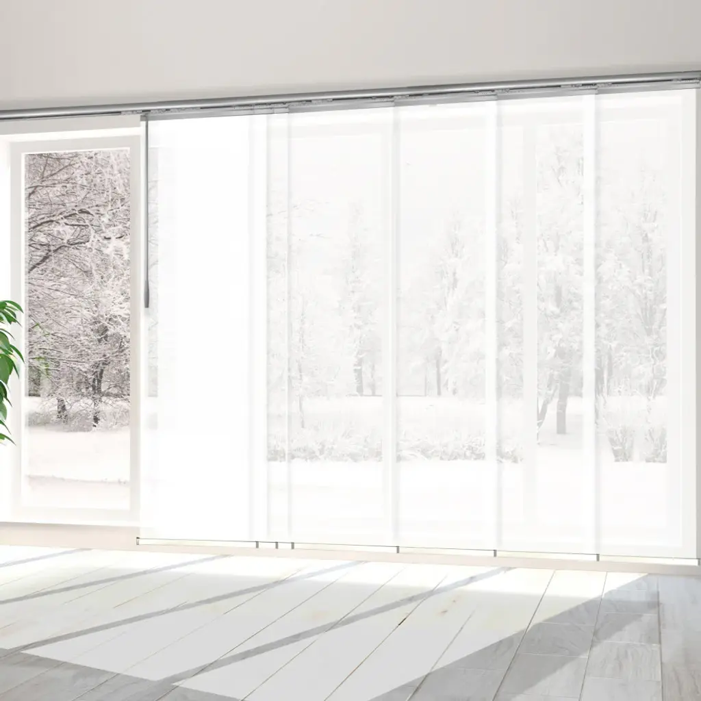 Central Design Products is pleased to introduce a new innovative panel track that offers easy 2-way installation, adding an alluring style and refined touch to your home decor. The single rail design of the track is sleek, compact, and reduces the overall footprint and weight of the installation, eliminating bulky, intrusive window treatments. Adjusting the panel height is a breeze � simply trim the panel, re-attach the liner, and install the panel weight. Detailed instructions are included.The panel track also features a patented slider design, made with aluminum and fitted with bearings that allow for durable and smooth operation. The sliders are stacked closer together than conventional panel tracks, reducing light bleed coming from the gaps between panels. This track has endless uses from dividing rooms, garages, offices, and closets to decorating windows and patios. Available in larger sizes including 8, 10, and 12 panels. Extends from 110-153� wide. Each panel measures 23.5" wide and 91.5" tall, with a total installation height of 94" (includes the 2.5" rail track). The track can be wall or ceiling mounted. The panels can stack on the left or the right. The clearance from the wall is extendable from 1.25� to 3.25� and projection from the wall is extendable from 3� to 4.25�. Navajo White panel is made from 100% Polyester, with a light filtering shade that blocks 50% of the light.