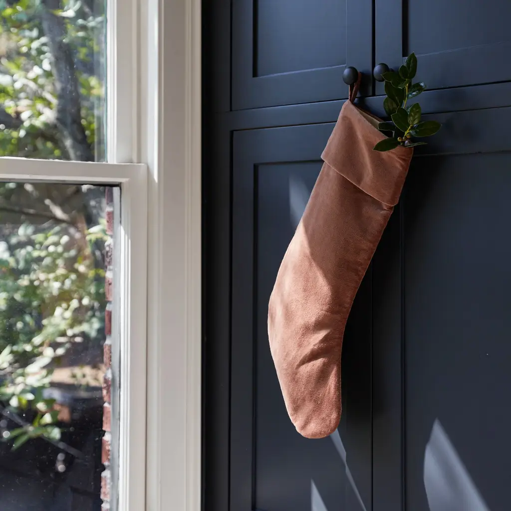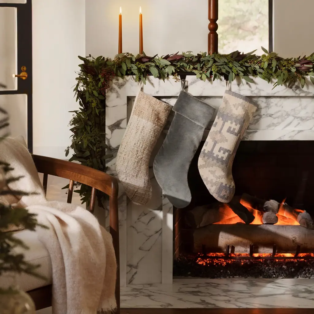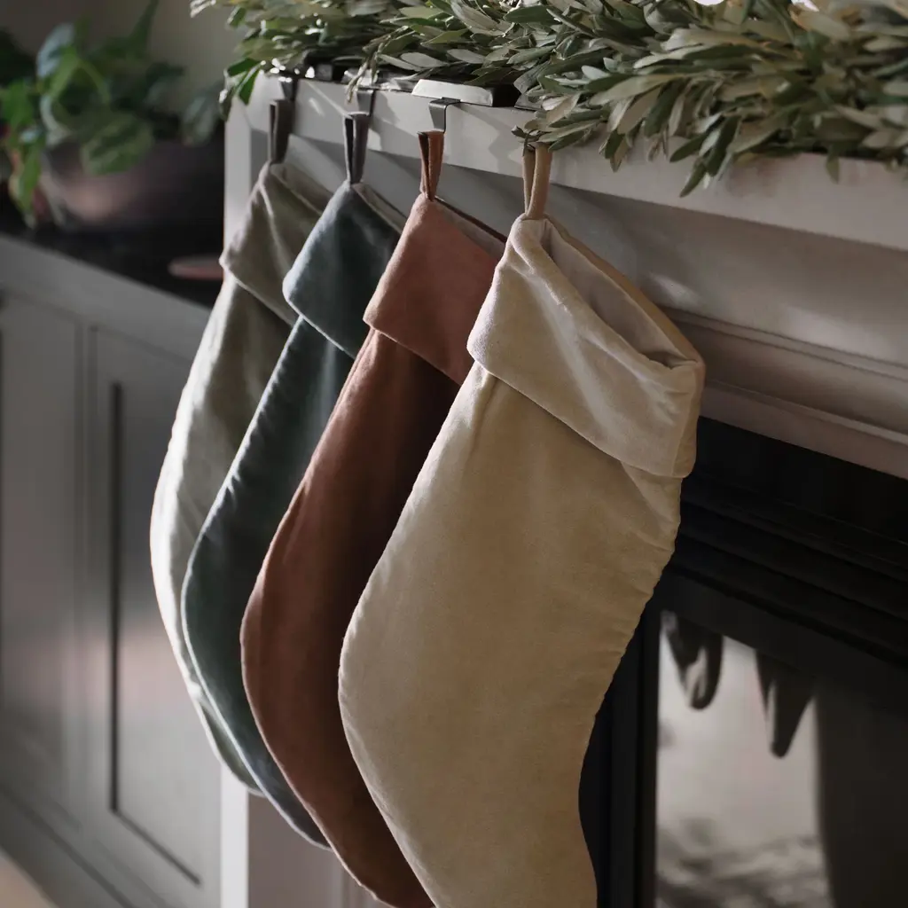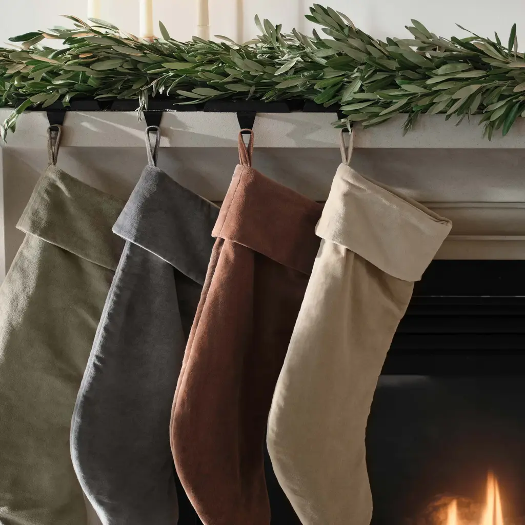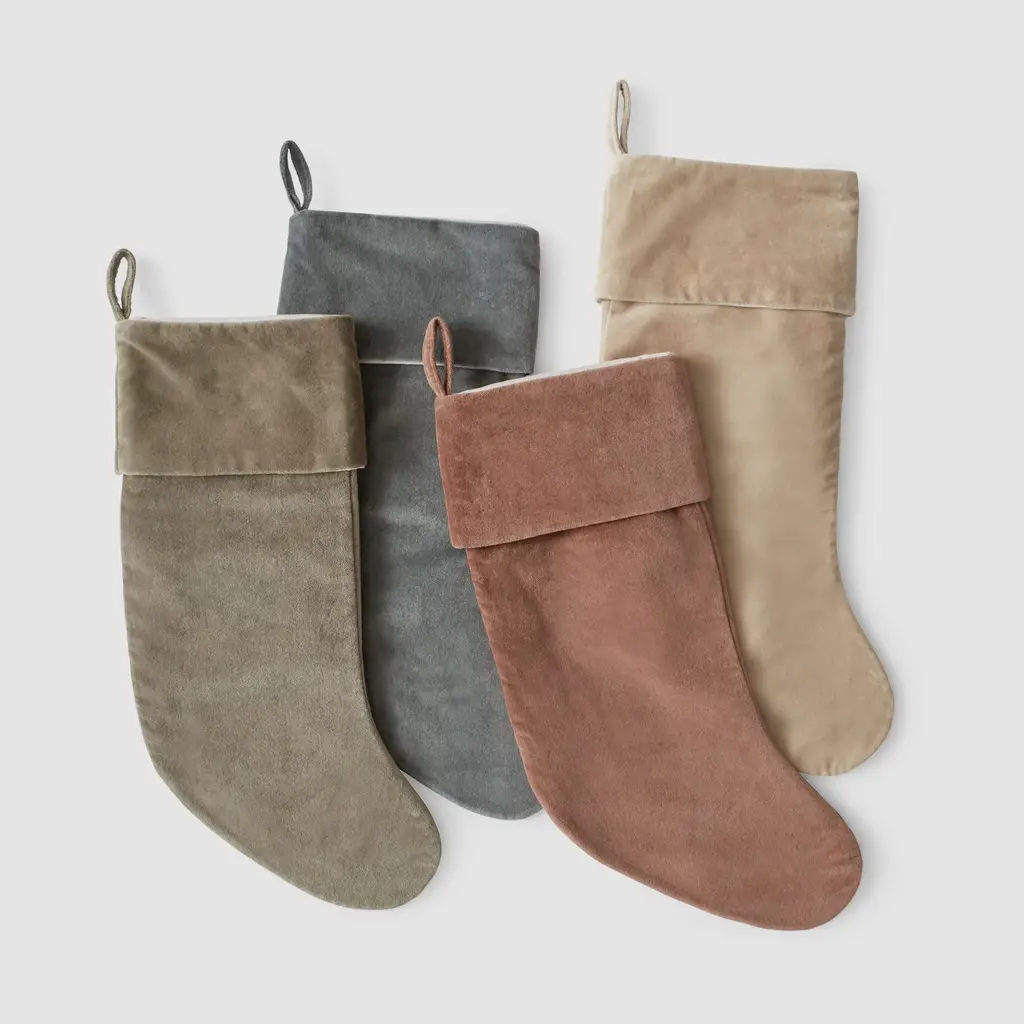 Warm up any space this season with the luxe colors and soft textures of these beautiful velvet stockings. Mix, match, and make some holiday magic with these stunning stockings, crafted from 100% organic cotton velvet. Available in a range of rich, earthy hues, each piece elevates any space with its rich texture and subtle sheen. Style with plenty of presents over your mantel or family room. Loomed by a collective of 200 weavers in Panipat, known around the world as India’s City of Weavers, every piece is Oeko-Tex® and Global Organic Textile Standard (GOTS) certified. All sustainably made in a fair trade environment.