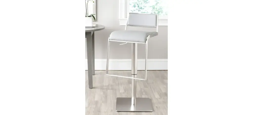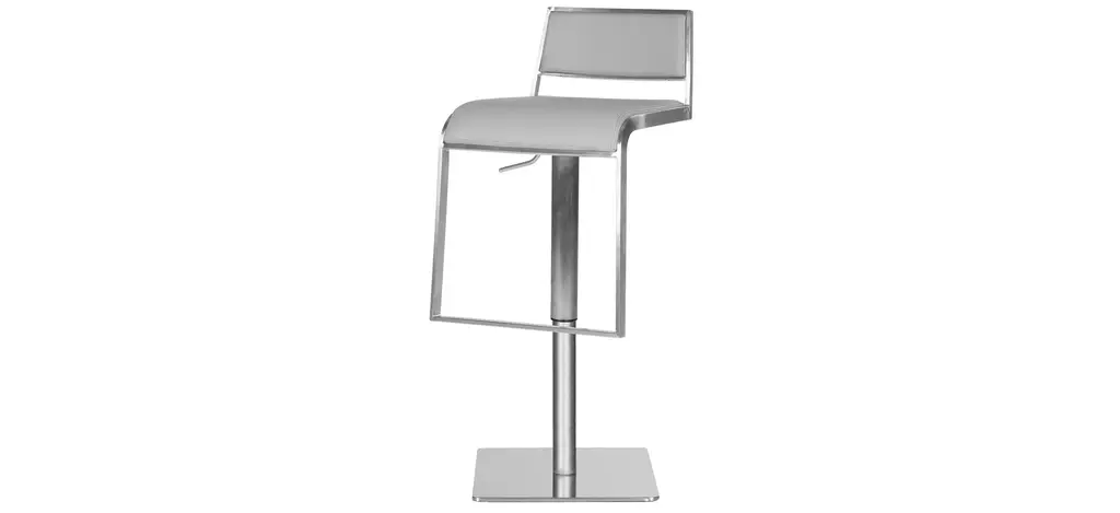 Slim and tapered, the adjustable Navine Bar Stool brings contemporary elegance to the kitchen or family room. Framed in stainless steel, this streamlined Navine is upholstered in grey polyurethane leather for new heights of comfort and chic.