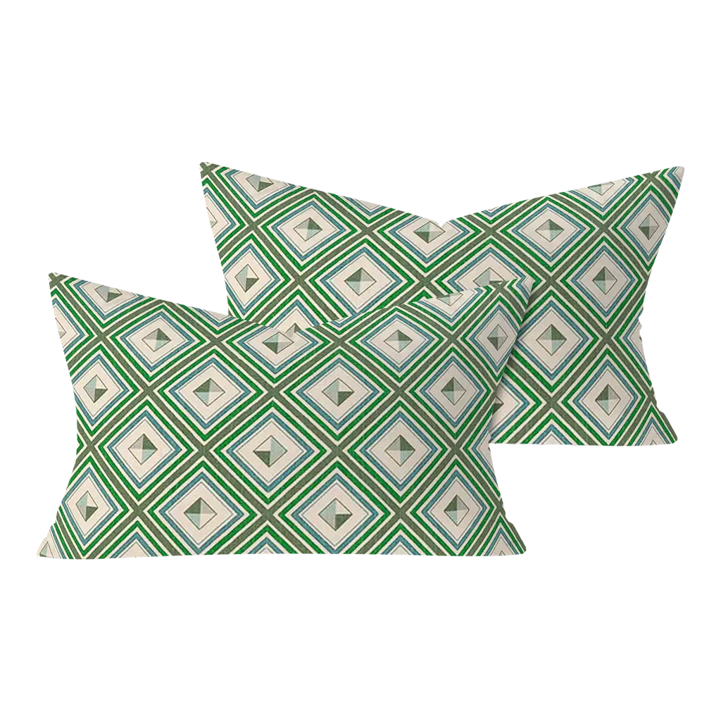 Navy & Green Diamonds Outdoor Lumbar Throw Pillow, 14"x20"