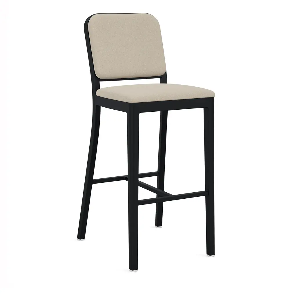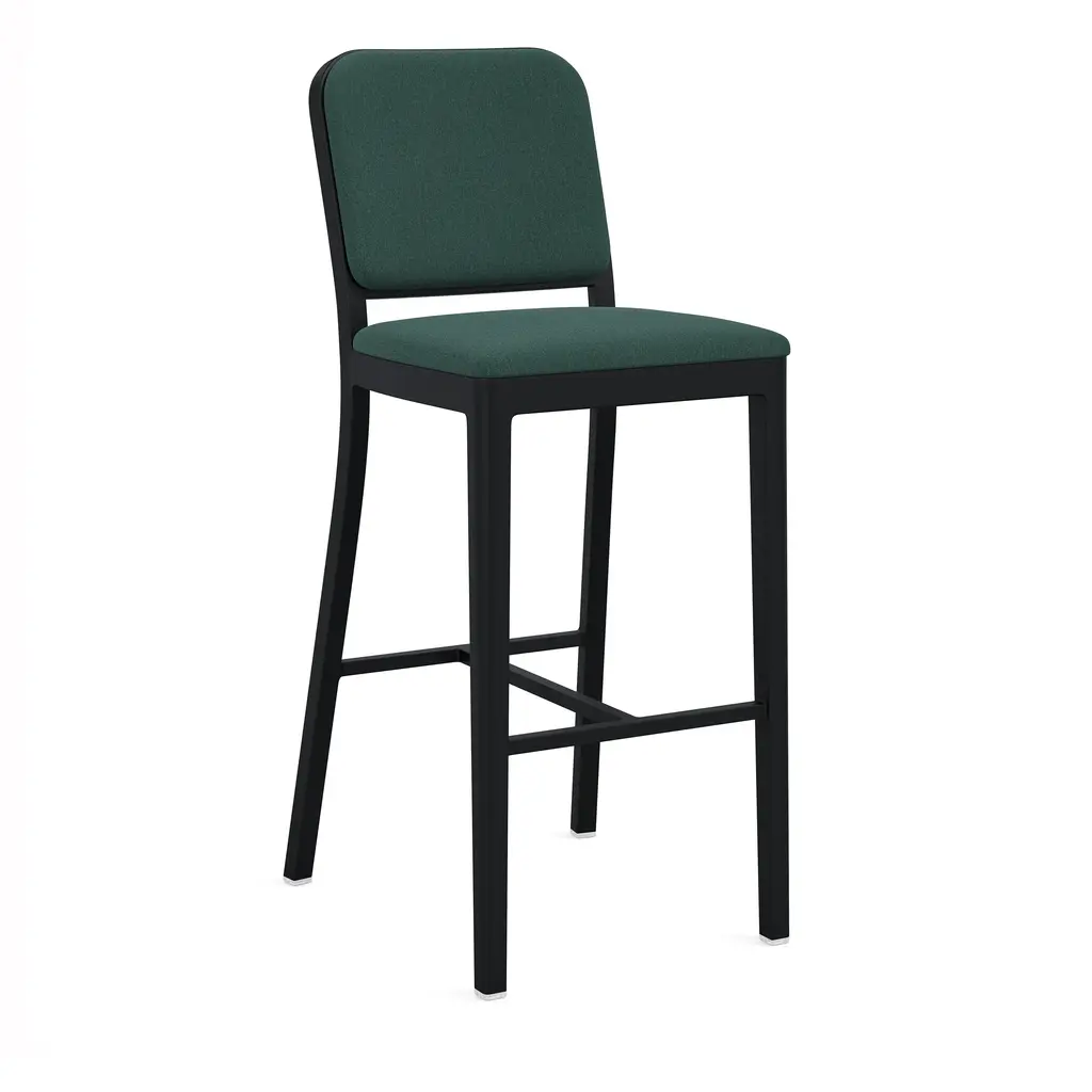 Emeco’s Navy Officer Outdoor Bar and Counter Stool brings a modern edge to a timeless classic, redefined by legendary designer Jasper Morrison. Made in the USA, this iconic stool features a frame of hand-brushed or powder-coated recycled aluminum, built for a lifetime of use. The comfortable seat and back are upholstered in a durable Sunbrella performance fabric made from 50% recycled acrylic. A fusion of heritage design and contemporary sensibility, it brings an icon of American craftsmanship to any setting. Highlights: