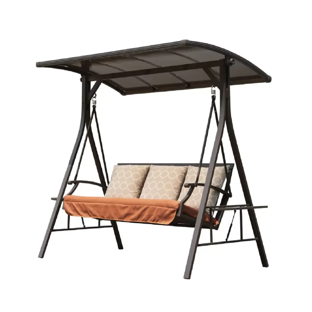 NAYSAYE offers a stylish three seat wicker bench swing designed for outdoor comfort and protection. Featuring an adjustable canopy this swing shields you from sun glare and debris while keeping you cool. Built with a durable rust resistant steel frame and premium PE rattan the bench ensures stability and long lasting use. It includes a foldable side table with cup holders and a quick dry foam seat for effortless maintenance and relaxation anywhere outdoors.