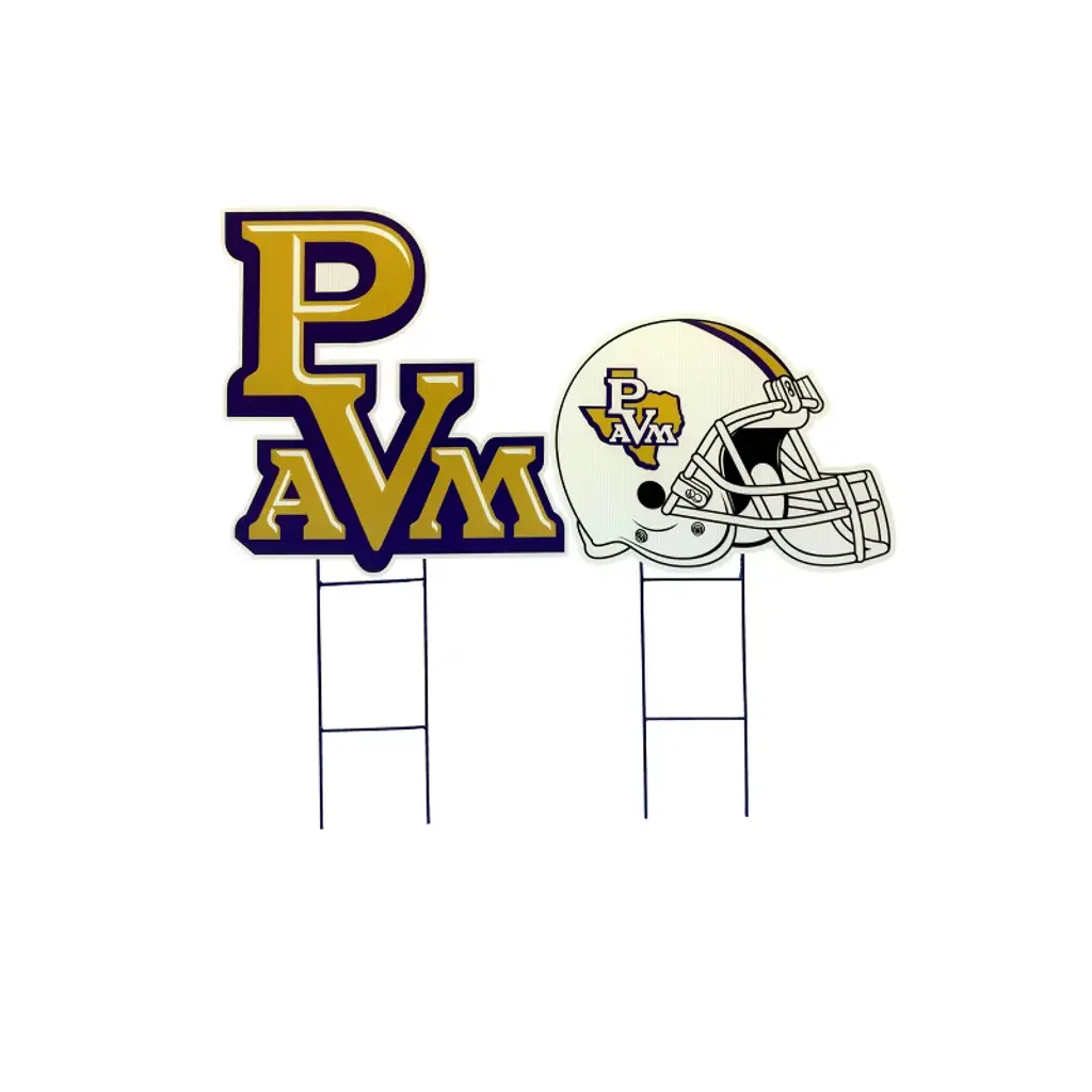Show off your team spirit with this Pegasus Sports Logo and Helmet 2 Pack Yard Sign Set! Featuring a bold team helmet design and a separate team logo sign, this set is perfect for decorating your yard, tailgate space, or any outdoor area. Made from durable, weather-resistant materials and easy to install with included stakes, these signs let you celebrate your favorite team in style—rain or shine!