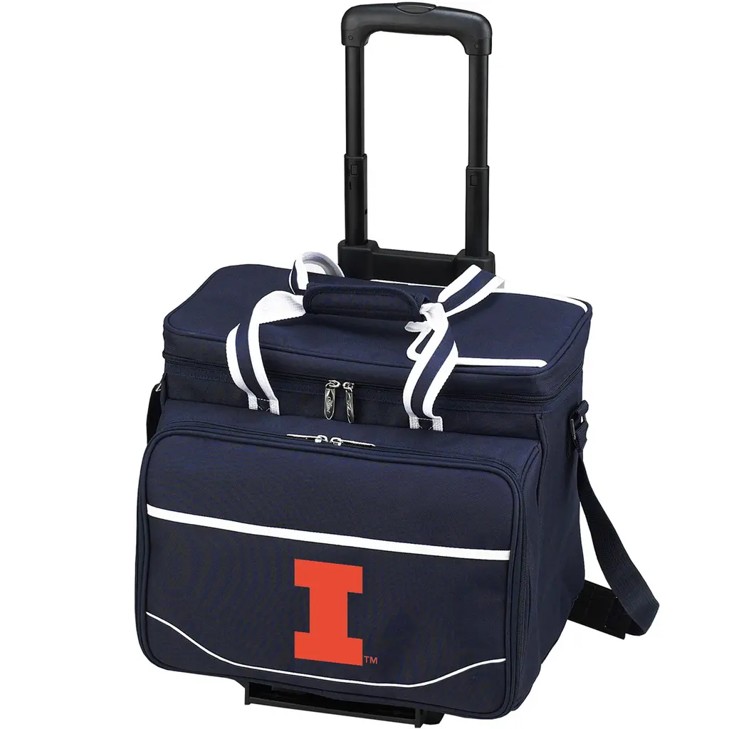 Ncaa Illinois Fighting Illini Insulated Equipped Picnic Cooler For Four On Wheels - Blue