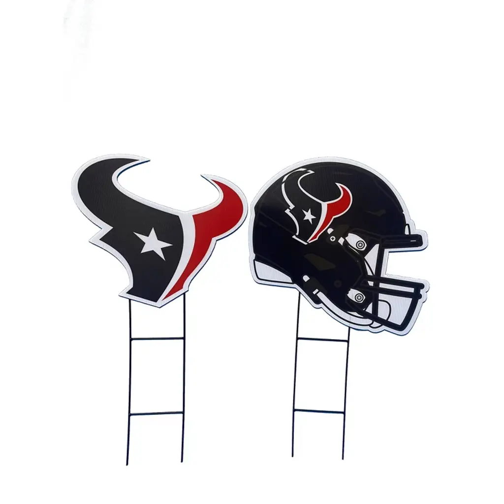 Show off your team spirit with this Pegasus Sports Logo and Helmet 2 Pack Yard Sign Set! Featuring a bold team helmet design and a separate team logo sign, this set is perfect for decorating your yard, tailgate space, or any outdoor area. Made from durable, weather-resistant materials and easy to install with included stakes, these signs let you celebrate your favorite team in style—rain or shine!