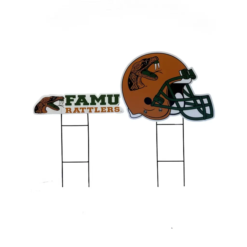 Show off your team spirit with this Pegasus Sports Logo and Helmet 2 Pack Yard Sign Set! Featuring a bold team helmet design and a separate team logo sign, this set is perfect for decorating your yard, tailgate space, or any outdoor area. Made from durable, weather-resistant materials and easy to install with included stakes, these signs let you celebrate your favorite team in style—rain or shine!