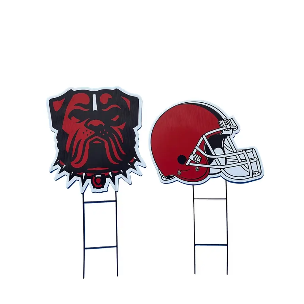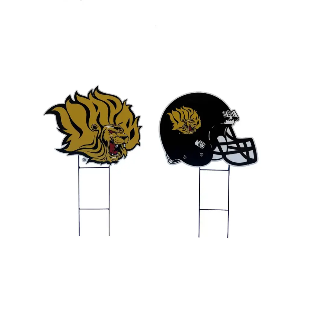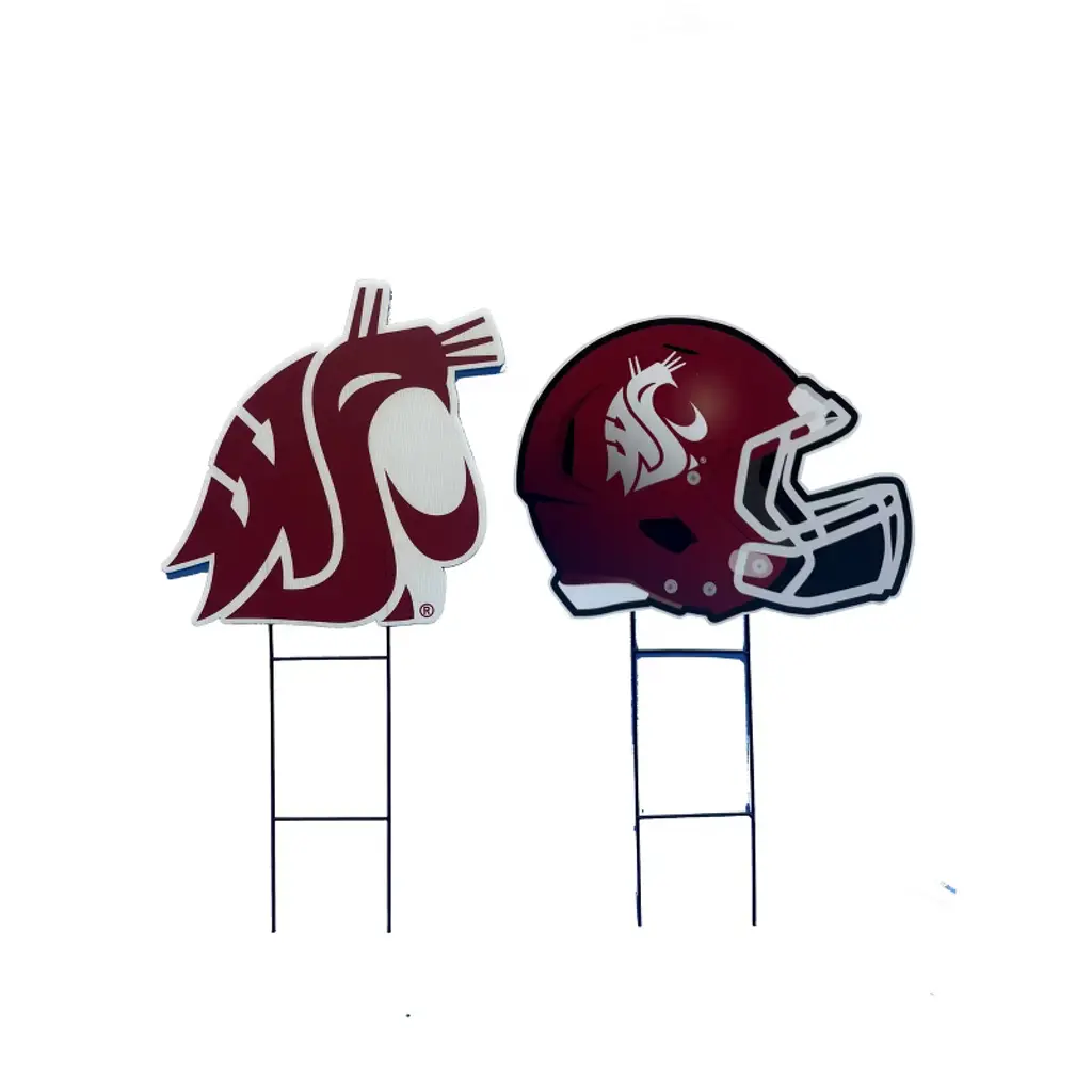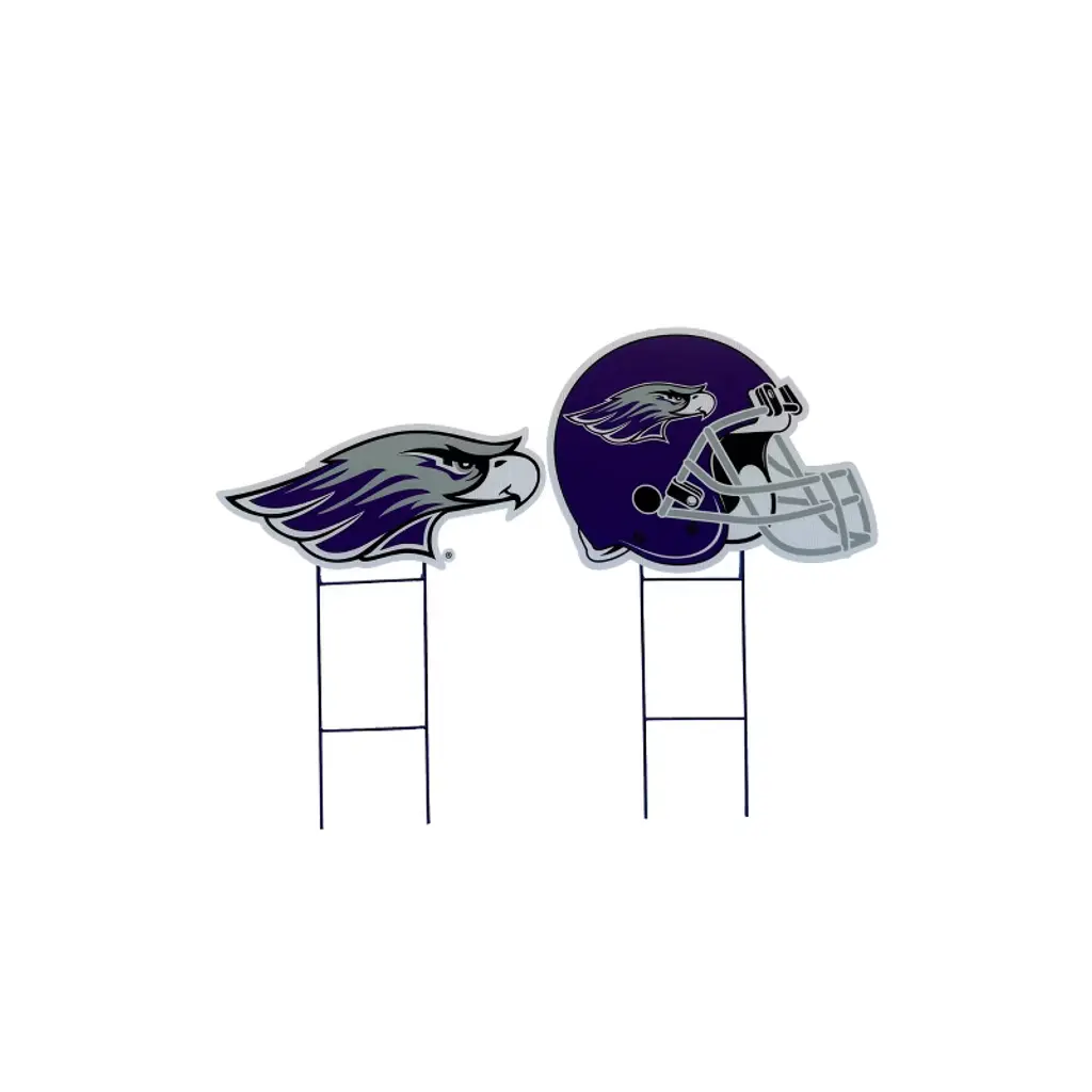 Show off your team spirit with this Pegasus Sports Logo and Helmet 2 Pack Yard Sign Set! Featuring a bold team helmet design and a separate team logo sign, this set is perfect for decorating your yard, tailgate space, or any outdoor area. Made from durable, weather-resistant materials and easy to install with included stakes, these signs let you celebrate your favorite team in style—rain or shine!