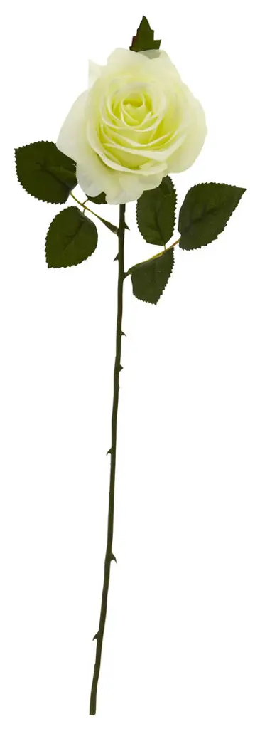 With rich green leaves and a realistic thorny stem, the bloom of the artificial rose flower sits gracefully atop the stem and adds a pop of color. The petals of the faux flower are incredibly realistic creating the feeling of freshly plucked flowers right from the ground. Arrange this classic bouquet in a white vase on its own, or pair it with simple green stems and some faux baby''s breath for a more diverse look.