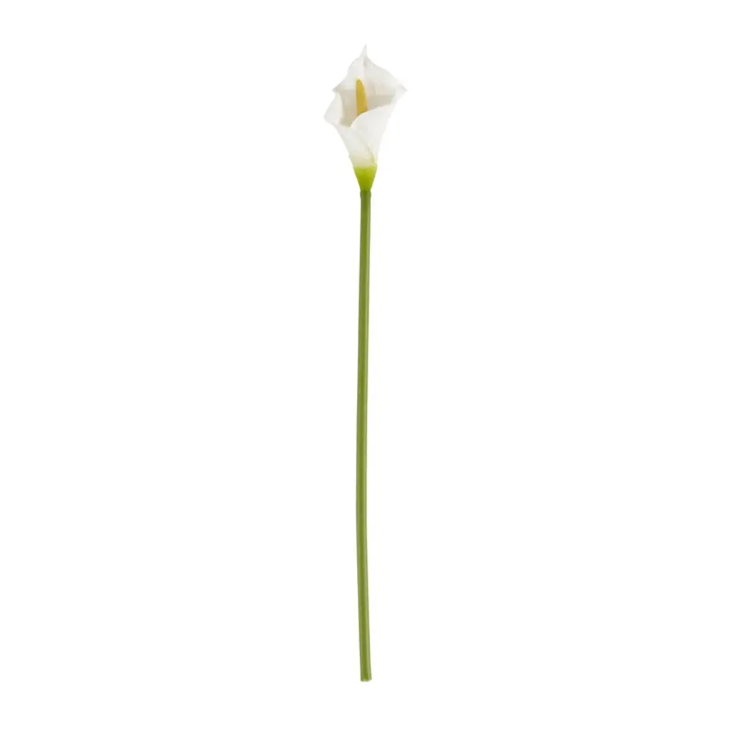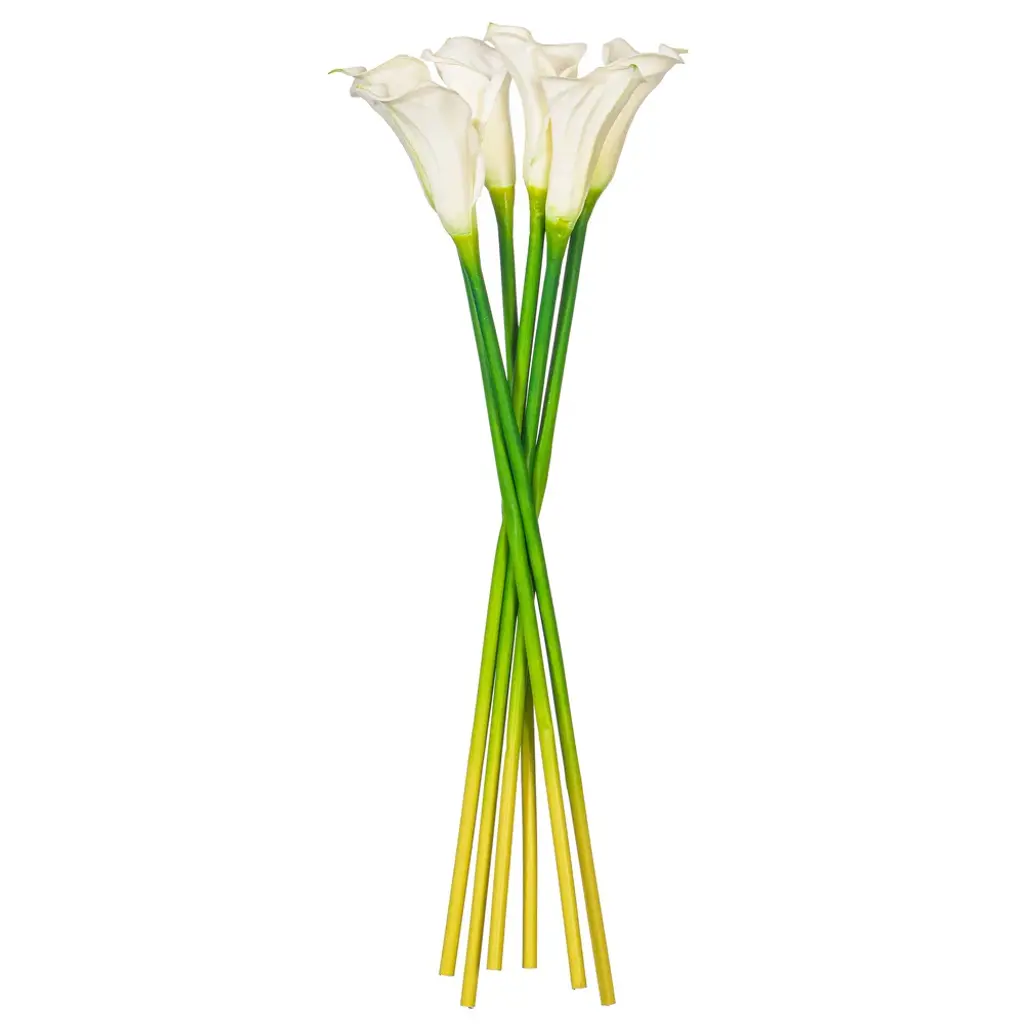 A single bloom sits on top of a thin, tall stem, making this artificial calla lily flower stand at 19.5 inches tall. Situate this set of twelve in a glass vase with natural river rocks or white stones, or arrange them amongst your favorite faux flower bouquet. Place the arrangement on your kitchen island next to your fruit for an added natural touch.