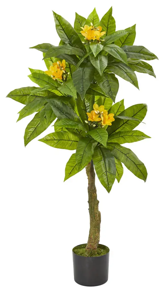 At 3 feet tall, this lemon artificial tree features lush, smooth-edged green leaves that complement and surround the small bright yellow lemons nearly hidden in the foliage. Yellow and green paint a beautiful contrast that will highlight any space. Position this artificial tree next to your breakfast nook with other artificial fruit set on the table for a spring scheme.