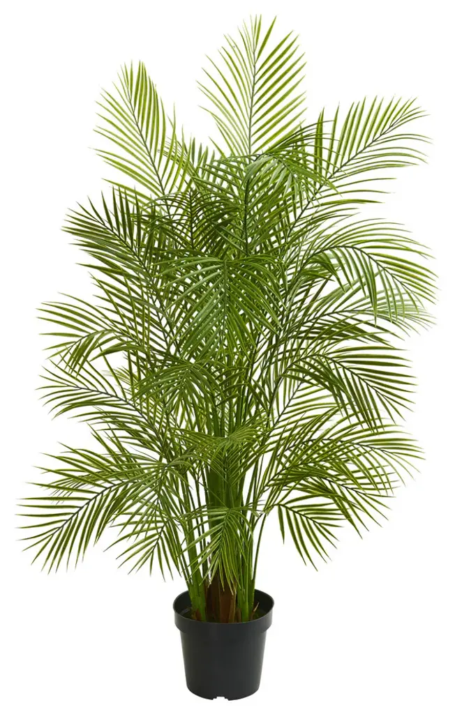 Standing at 5 foot tall, this artificial Hawaii palm tree would look great sitting in the corner of your enclosed porch, or next to a book shelf in your sitting area. The large, bold green fronds extend outward from a single trunk and fan out in a dramatic display, adding to the natural appeal feel of this piece. Add other artificial palm trees to this tree to recreate a tropical atmosphere in your home.