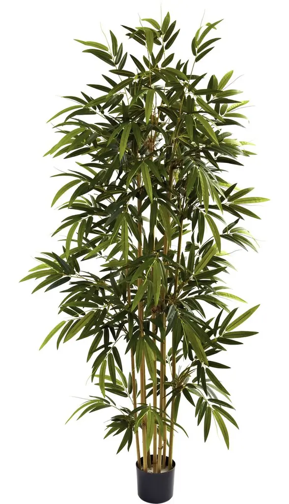 A multitude of small, realistic green leaves fill the thin stems of this real to the touch artificial bamboo tree. With its realistic appearance, this 57-inch artificial tree will bring a tropical feel to any room in your home. Place it next to an entryway table or your favorite neutral-toned couch to add some vivid color to your arrangement.