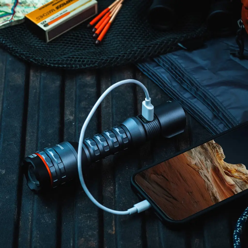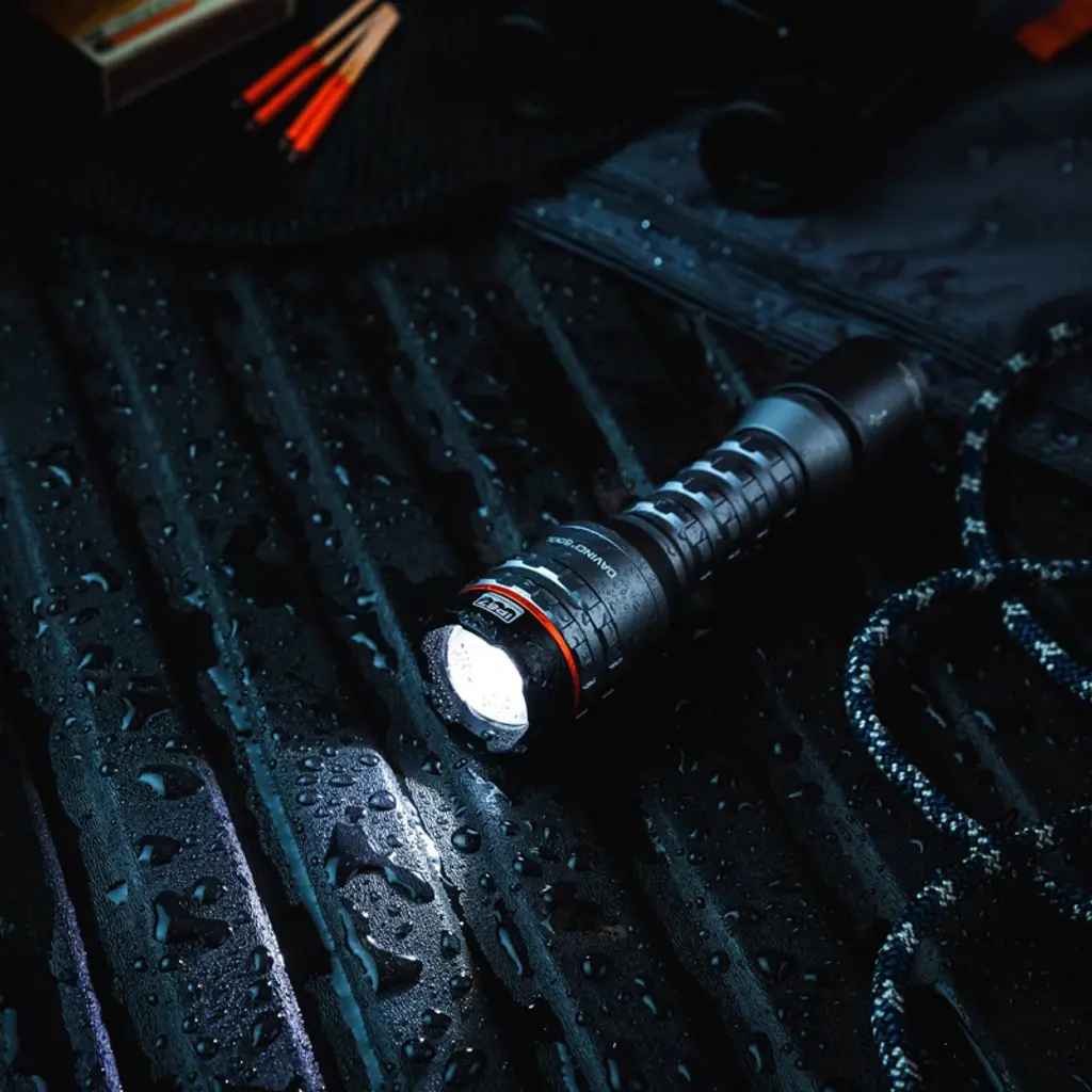 Elevate your lighting game with the Davinci® 800L LED flashlight, a fusion of rugged durability and sophisticated design. This powerhouse of illumination boasts smart technology features, including Smart Power Control (SPC) and Direct-to-Low Startup, ensuring you always have the perfect amount of light without compromising battery life. With an impressive 800 lumens, four versatile light modes, and 3x zoom capability, this flashlight adapts to any situation, providing you with precision lighting and power conservation.Not just a flashlight, but a versatile companion, the Davinci® 800L is USB-C rechargeable and even doubles as a power bank with its USB-A port, guaranteeing your mobile devices stay charged during your adventures. Safety is paramount, and the removable lanyard adds an extra layer of protection against drops, while the rugged aircraft-grade aluminum body keeps it lightweight yet incredibly durable. With an IP67 rating, this flashlight is ready to conquer any weather conditions, ensuring that even rainstorms won't dampen your tasks or adventures. Experience the future of illumination with the Davinci® 800L LED flashlight – where style meets substance.