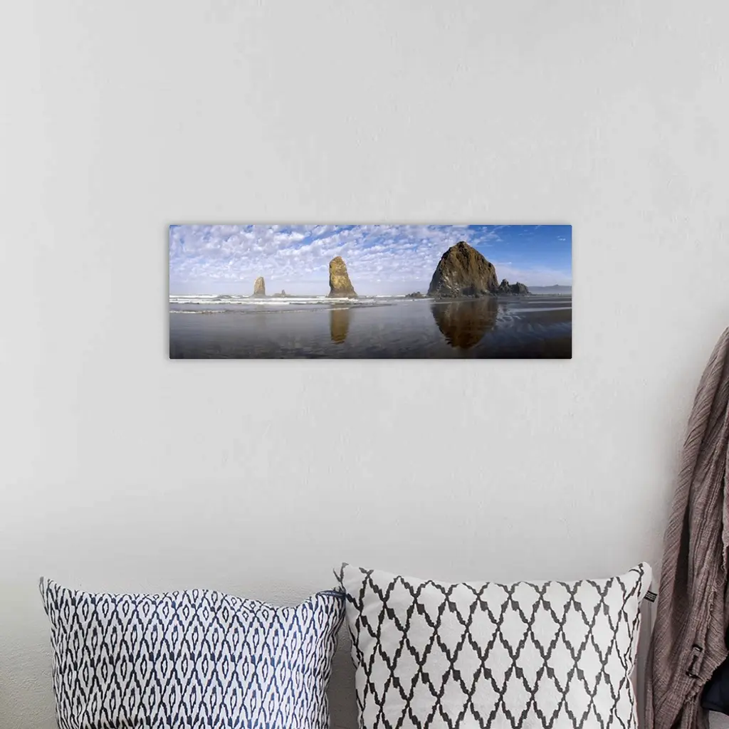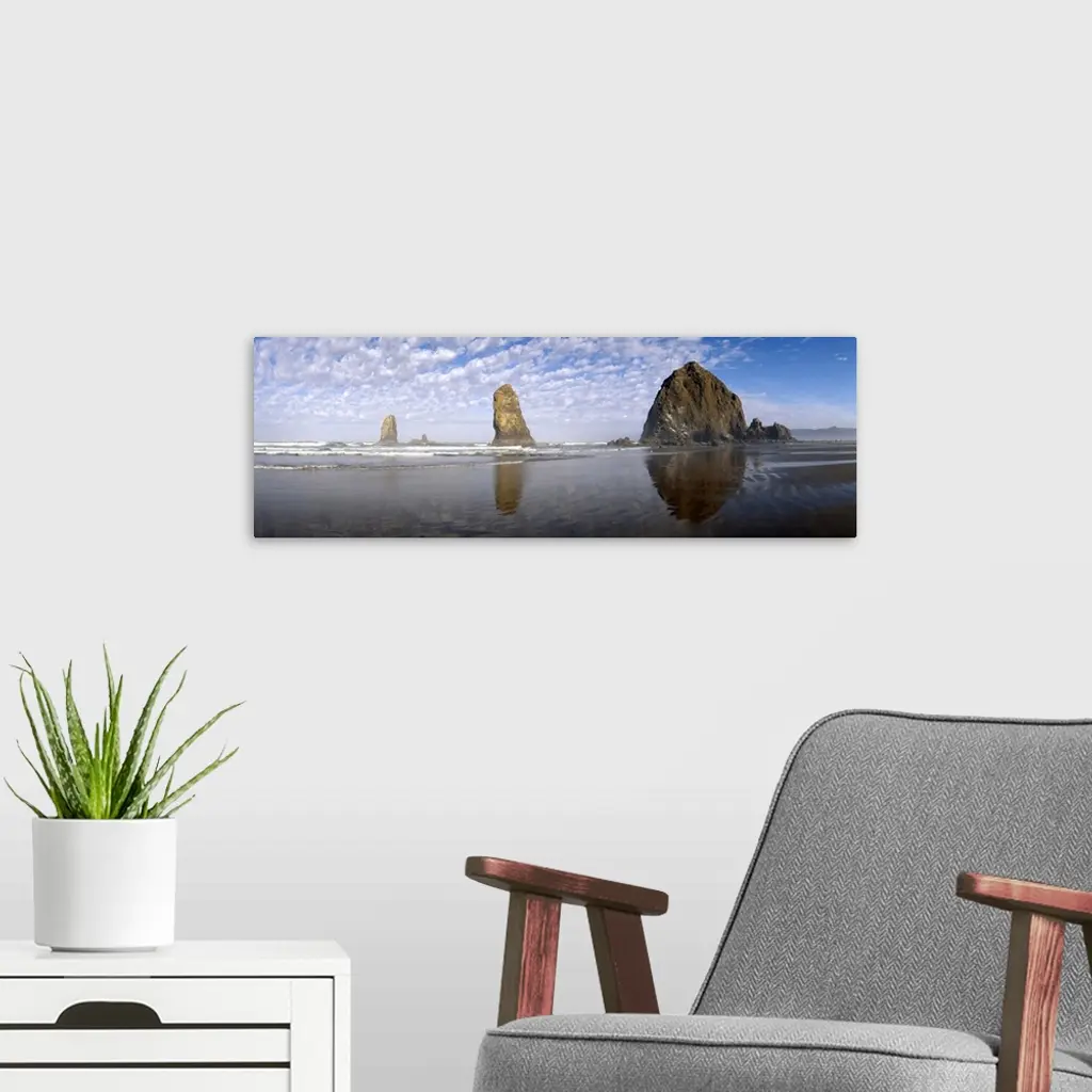 Needles and Haystack rock formations at Cannon Beach, Oregon