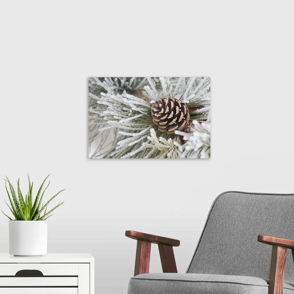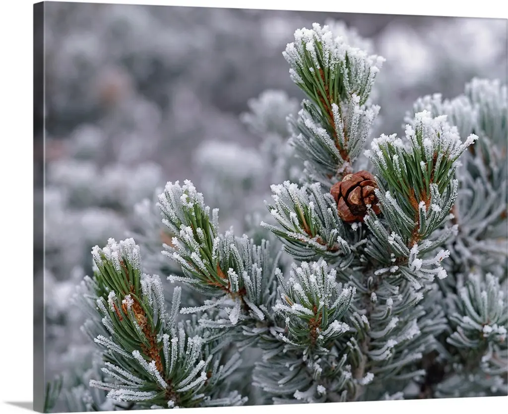 Needles Of A Pine Tree And A Pine Cone Covered In Frost, Calgary, Alberta, Canada wall art for home and office decor. Discover canvas art prints, photos, mural, big canvas art and framed wall art in GreatBigCanvas.com's varied collections.