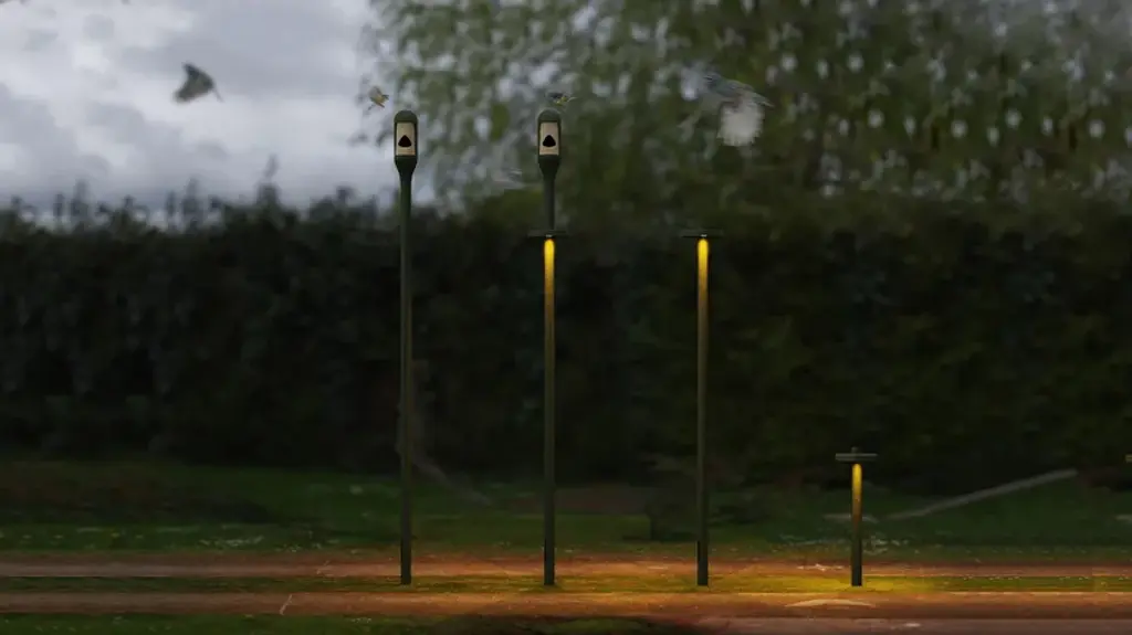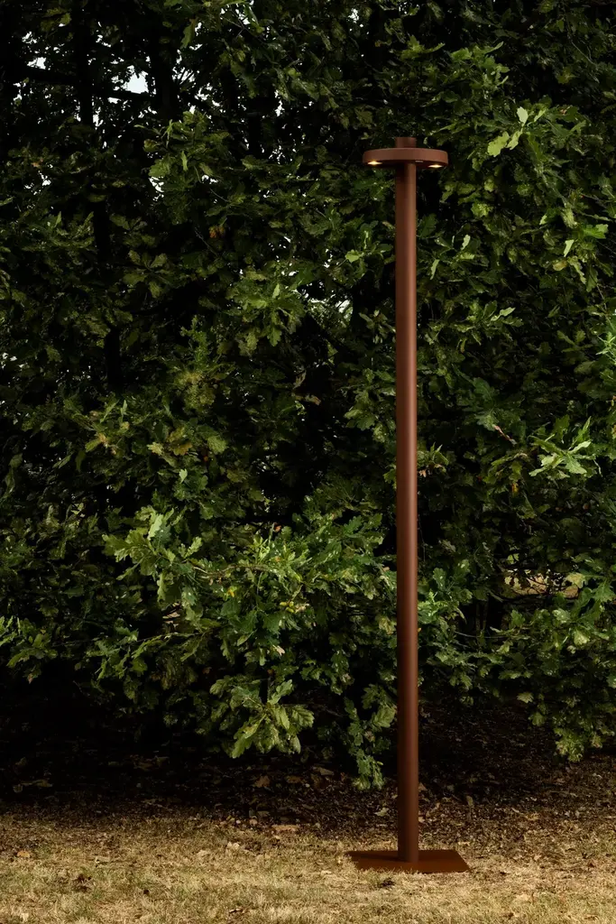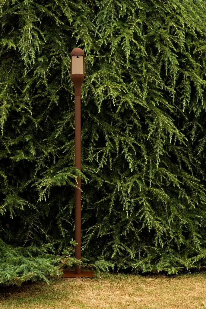 Needoo is a new project that puts the environment first. Comprised of a bollard and three different poles, it offers perfectly controlled light that respects nature by illuminating only what is strictly necessary. Perched atop the pole there is a shelter for birds. The light head is positioned below the nest and consists of a plate which screens the light and forms a surface upon which small animals can rest. It combines an approach that is mindful of the perceptive needs of humans and animals and that speaks of respecting and sharing spaces. Birds must be able to navigate their way using their natural reference points which are the night sky with the stars and the moon. The controlled light of Needoo does not interfere with this perception and does not dazzle them. The carefully designed optics, their positioning, the quality of light and its control via integrated sensors help to ensure harmonious co-existence of humans and nature, respecting the circadian rhythms of each species and a positive energy balance. The interaction between light, humans and nature is guided by smart programming that calibrate light intensity based on presence, employing a gradual progression that creates no unsettling contrasts. Needoo is not just an outdoor lighting system but above all a place ready to embrace biodiversity. Needoo is the perfect system for helping animals in our contemporary spaces, offering suitable shelter in parks to help repopulate urban areas with different species, enriching our quality of life. As indicated by numerous studies, the lack of nesting spaces is one cause of the loss of biodiversity. Needoo aims to be a small but practical step, an action to help reverse this worrying trend. Needoo project opened a collaboration with Birdlife Swisse on all aspects linked to the different species’ behaviour.FEATURESColour: Green / RustTypology: Floor / PoleHeight: 12cm / 253cm / 302cm / 331cm / 59.6cm / 93cmDiameter: 30.7cm / 7.5cmWatt: 11W / 13W / 21W / 4WDelivered Lumens Output: 23lm / 337lm / 455lm / 478lm / 910lmCCT: 3000KCRI: 80 / 90IP 65