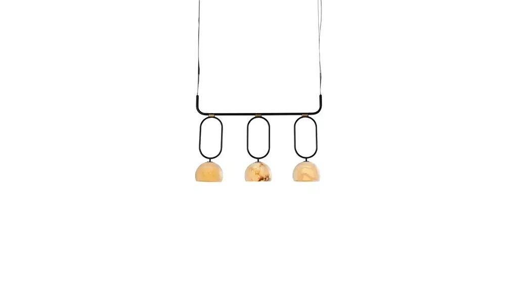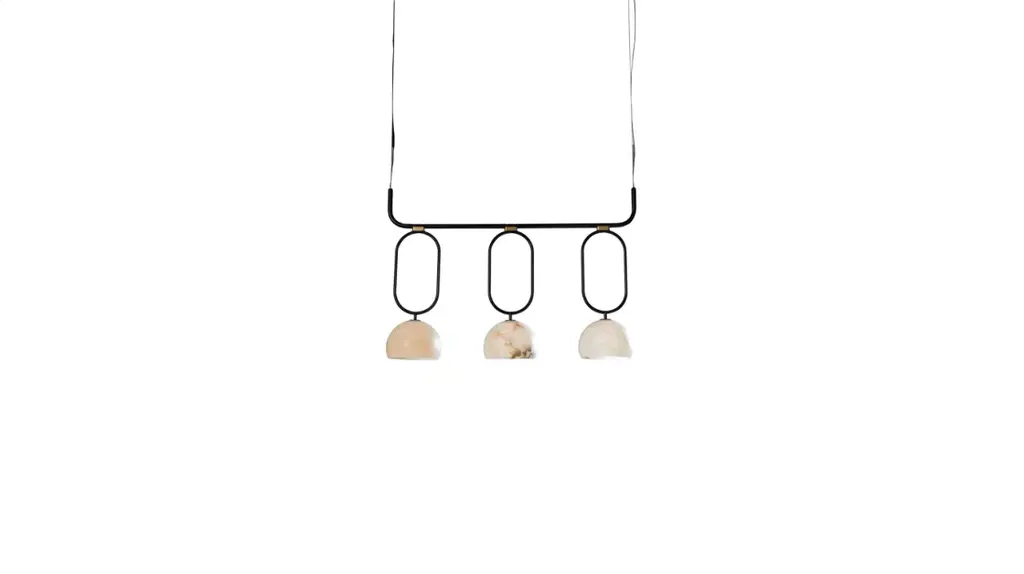 Like a half-moon, the precise simplicity of the lampshade reveals the nobility and purity of hand-carved alabaster. The diffused light highlights the stone's veins, which have the irregularity and beauty of a natural material.