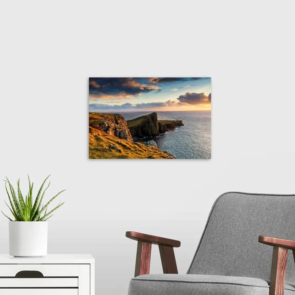 Neist Point Lighthouse At Sunset, Isle Of Skye, Highland Region, Scotland