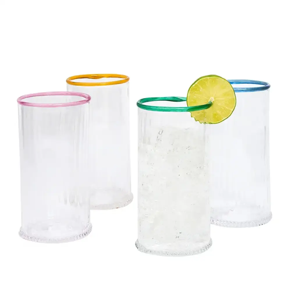Our iconic Bohemian Glass is given a fresh and modern spin with a joyful wink of color. Chic and shimmering, each Highball ripples with intricate mouth blown glass and is rimmed with a happy hue to create pure cocktail-hour eye candy for everything from lemonade to fun party drinks. This set includes one of each color. Gift boxed. Based in Connecticut, Juliska is committed to bringing elegant European design into our modern homes. Since its founding in 2001, when David and Capucine Gooding began by working with artisans outside of Prague to reproduce antique Bohemian glass pieces, every piece from Juliska has shared a rich heritage spanning six centuries of European design. Juliska's creations are timeless, romantic and effortlessly chic.