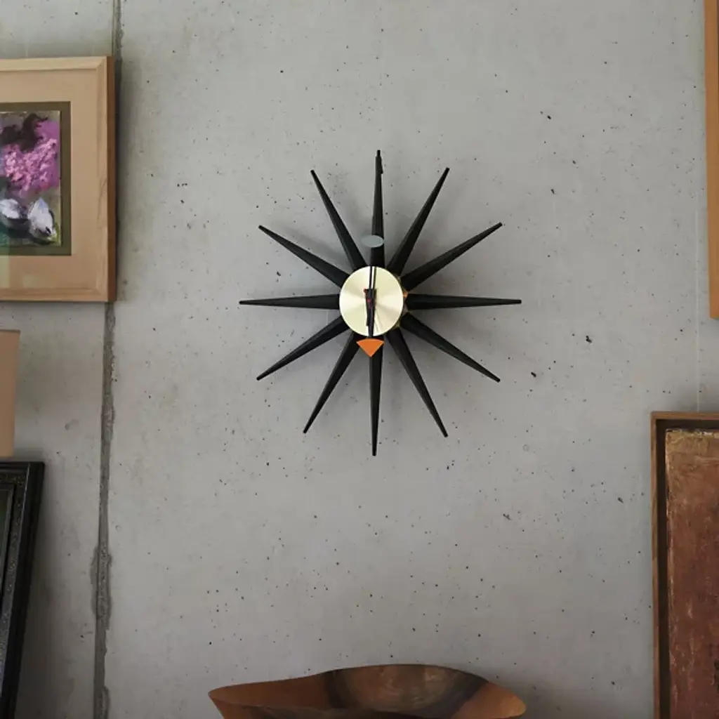 The Vitra Sunburst Clock, a '50s George Nelson design, is an authentic re-edition of a classic mid-century modern design. The Sunburst Clock is produced from the original design document from the Nelson archive with the blessings of the George Nelson estate. The sharp design is paired with high-grade quartz movement.