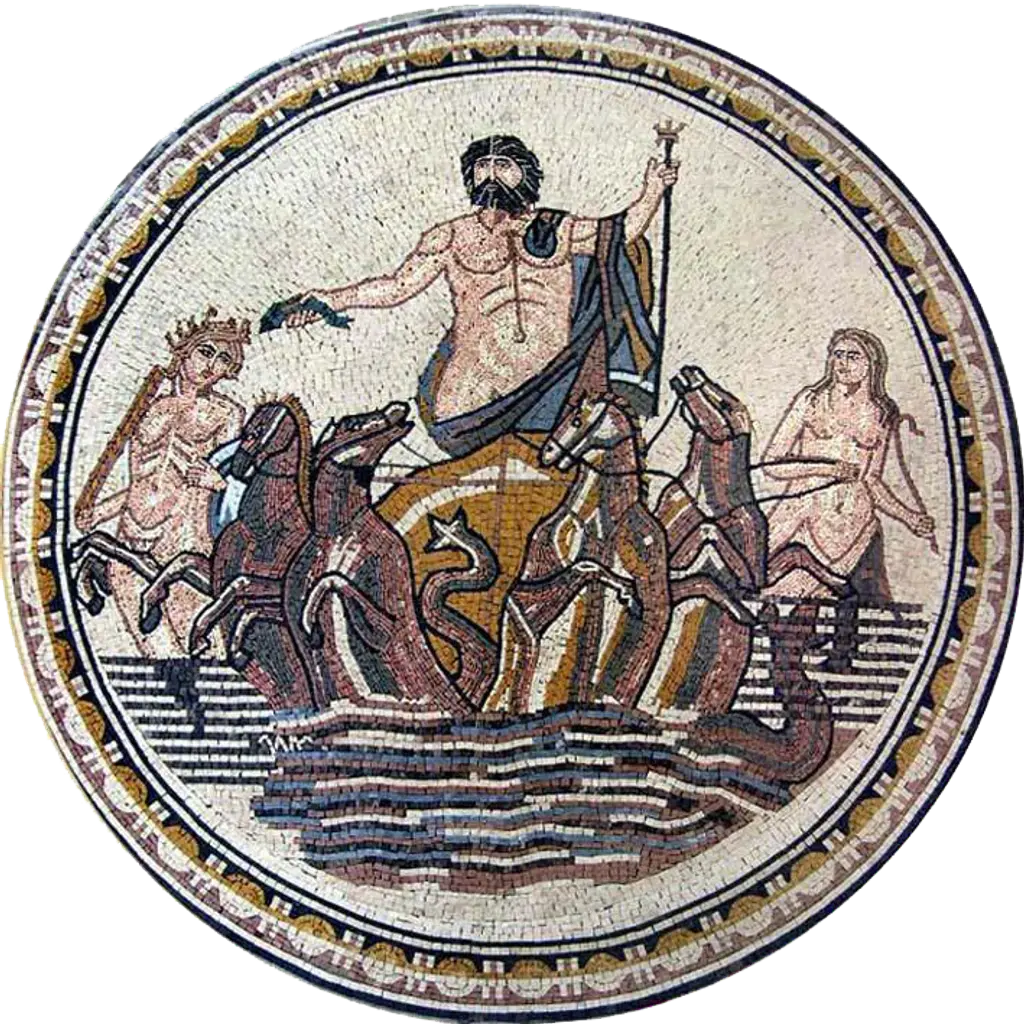 Neptune God Of Sea Mosaic Medallion Mural - 152cm X 152cm (60" X 60")