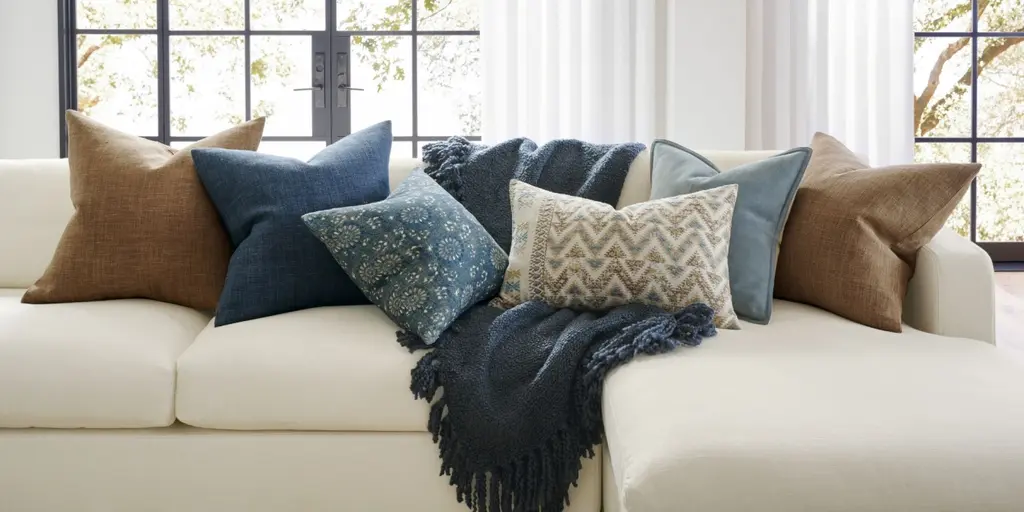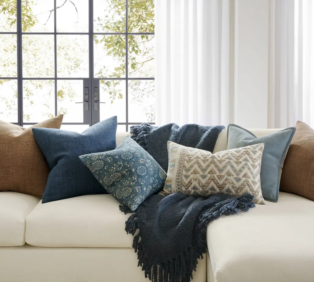 We put a modern spin on this classic Japanese block print by using calming indigo. Crafted of linen, it’s smooth with just the right amount of texture. The calming blue hues add depth to the design and a neutral layer to a couch or chair.