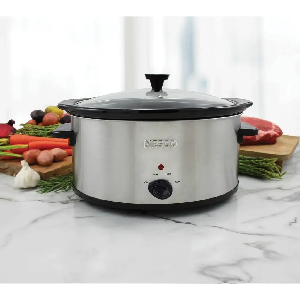 It’s easy to get dinner to the table on busy days with your NESCO 8-Qt. Slow Cooker that serves 10 or more people. Simply add your ingredients, choose your heat setting, and go about your day. This cooker has an attractive stainless steel finish and includes 3 heat settings: high, low, and warm. The removable ceramic pot doubles as a serving dish and is both oven and refrigerator safe, making meal prep for busy weekdays a snap. The clear, tempered-glass lid lets you watch the cooking process. The stay-cool handles make the unit portable,allowing you to bring that delicious flavor anywhere. No matter what the occasion is, the NESCO 8-Qt. Slow Cooker makes time around the dinner table special.