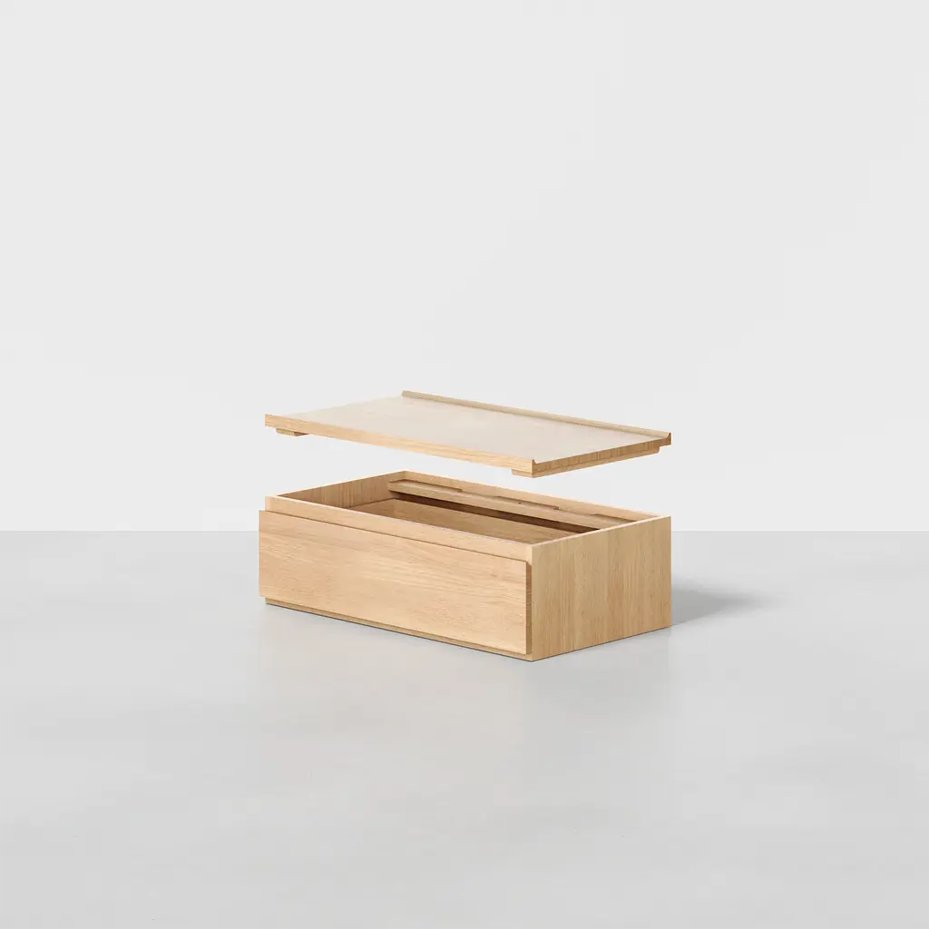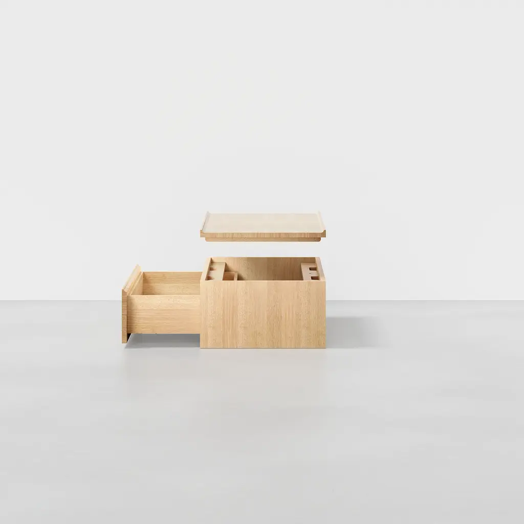 Modular design made simple. The Drawer provides safekeeping for essentials and is made from 100% upcycled wood. Add to an existing configuration with the Stacking Drawer or the Base Drawer, for fully customizable and adaptive organization. Compatible with The Dresser, The Credenza, The Shelving, and The Cubby.