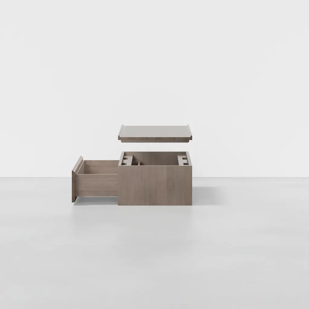 Modular design made simple. The Drawer provides safekeeping for essentials and is made from 100% upcycled wood. Add to an existing configuration with the Stacking Drawer or the Base Drawer, for fully customizable and adaptive organization. Compatible with The Dresser, The Credenza, The Shelving, and The Cubby.