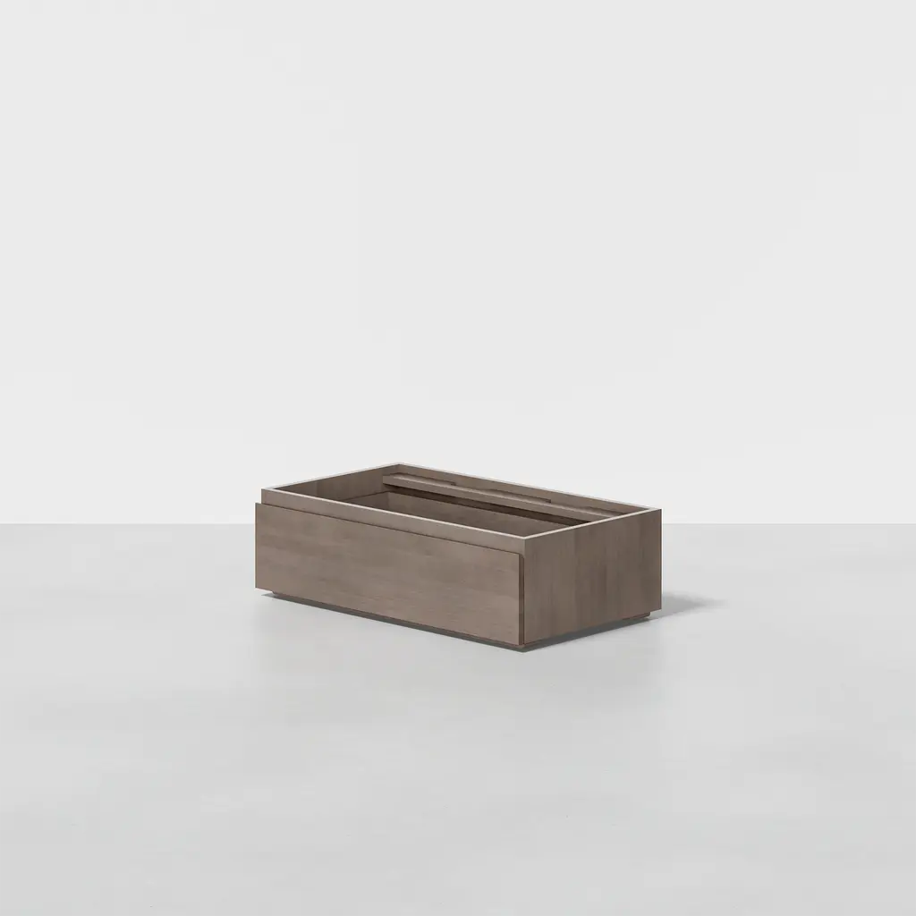 Modular design made simple. The Drawer provides safekeeping for essentials and is made from 100% upcycled wood. Add to an existing configuration with the Stacking Drawer or the Base Drawer, for fully customizable and adaptive organization. Compatible with The Dresser, The Credenza, The Shelving, and The Cubby.