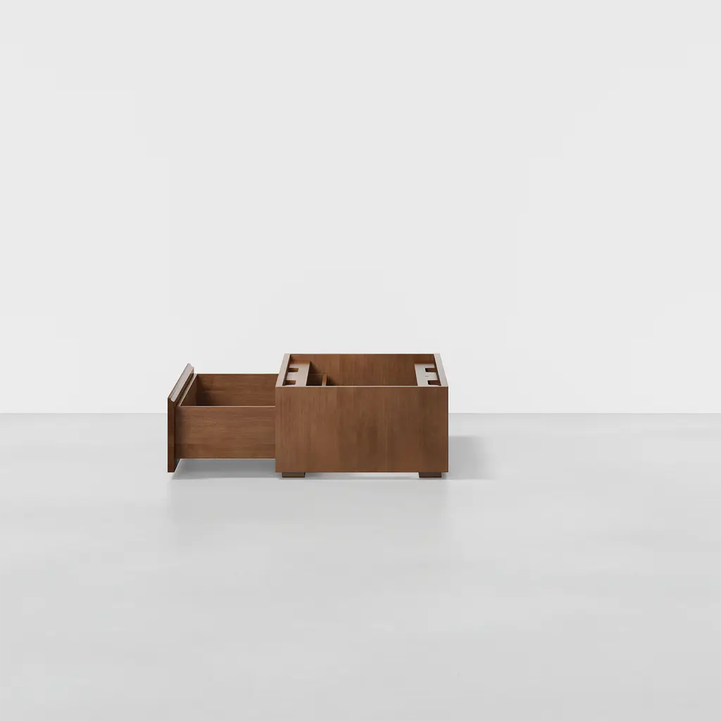 Modular design made simple. The Drawer provides safekeeping for essentials and is made from 100% upcycled wood. Add to an existing configuration with the Stacking Drawer or the Base Drawer, for fully customizable and adaptive organization. Compatible with The Dresser, The Credenza, The Shelving, and The Cubby.