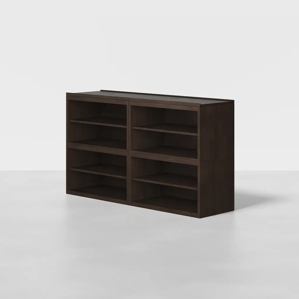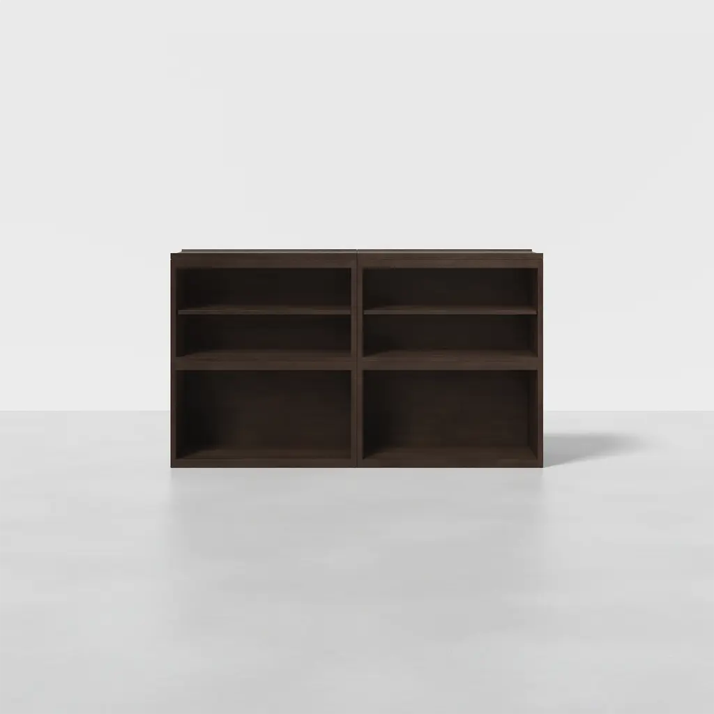 A highly versatile piece that emphasizes visibility and flexibility. Combines the luxury of built-in shelving with the flexibility of a modular design. Do not stack more than 2 shelves or 47" vertically.