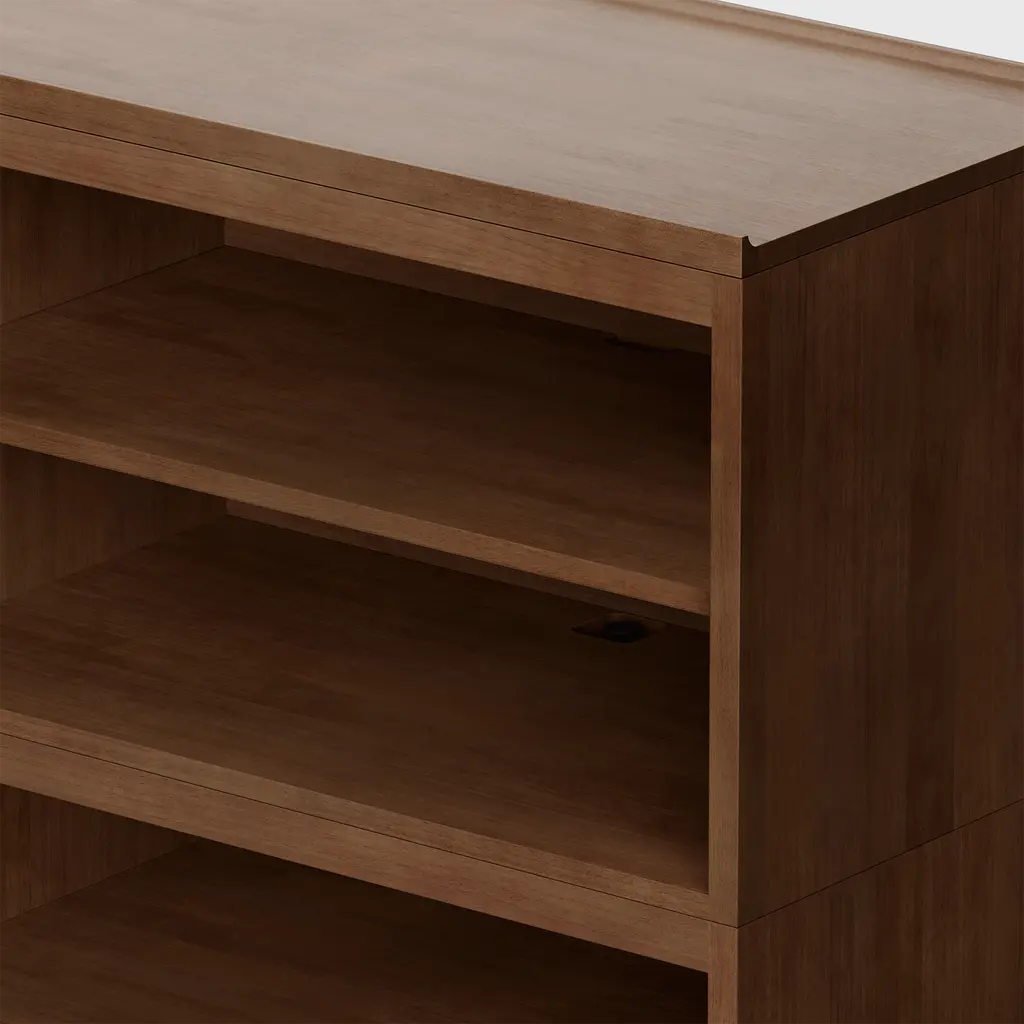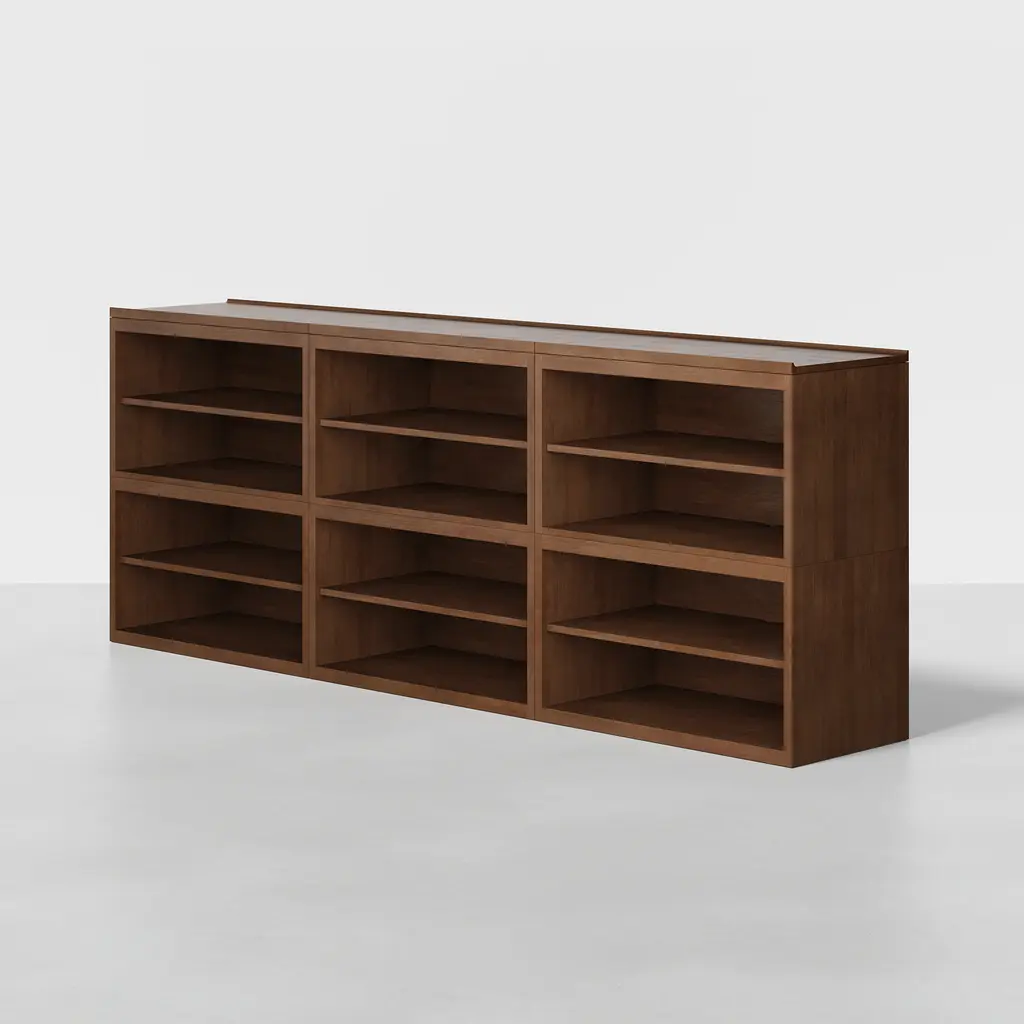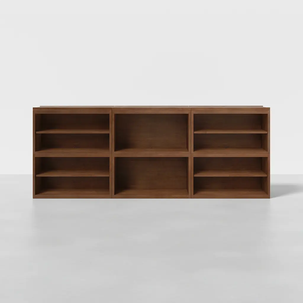 A highly versatile piece that emphasizes visibility and flexibility. Combines the luxury of built-in shelving with the flexibility of a modular design. Do not stack more than 2 shelves or 47" vertically.
