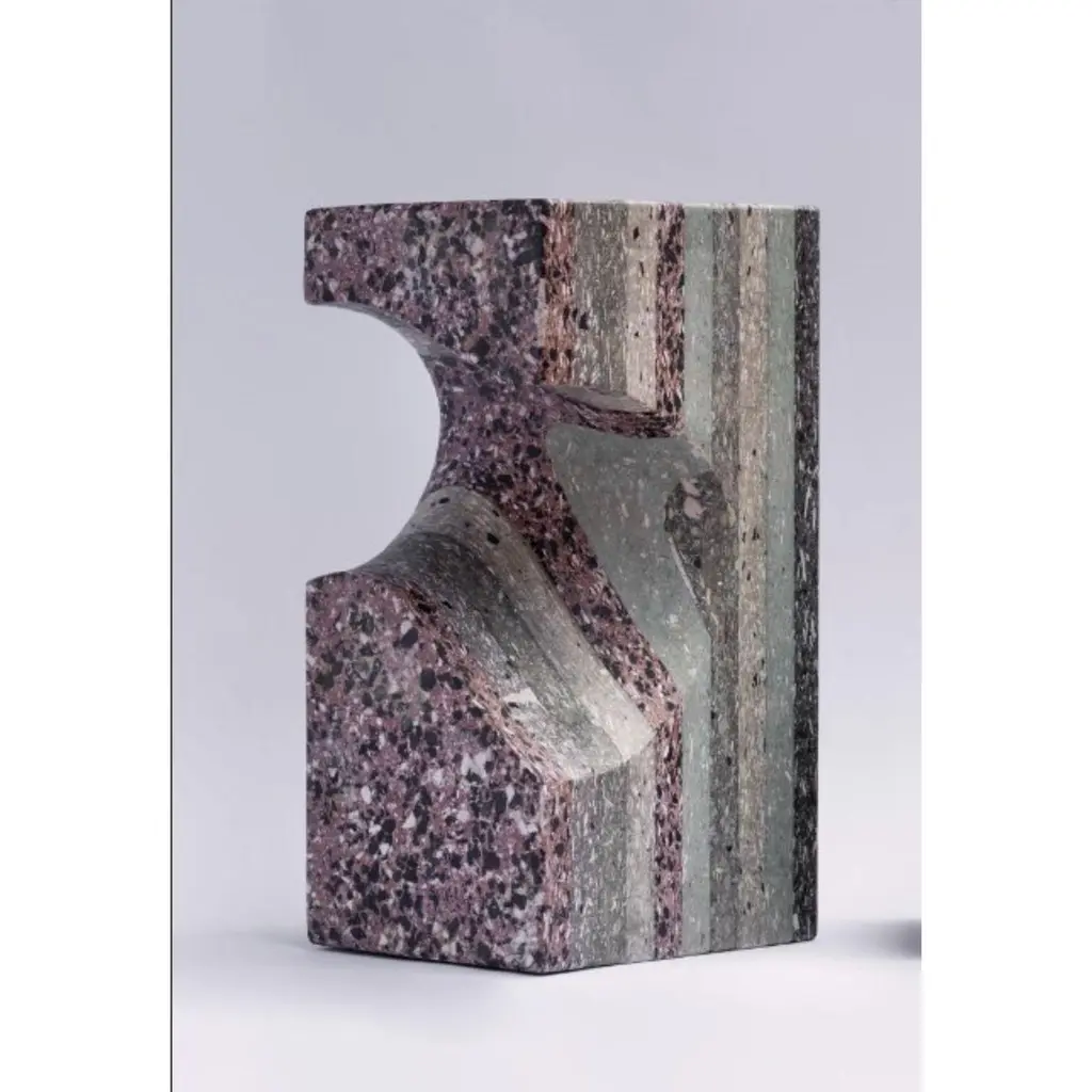 Nestep by DMNTS DesignDimensions: 20 x 40 x 20 cmMaterials: Recycled fibre-glass and expanded plastic boardsUnique piece. NESTEP, is based on the reuse of manufacturing scraps from Italian company Gees Recycling.The investigation focused on the reuse of processing scraps of furnishing accessory, made up of recycled fibre-glass and expanded plastic boards, fetched from abandoned boats and campers. NESTEP multi-purpose & user” consists of two identical and complementary modules changing their shape according to the user point of view and combining several functional scenarios. The project aims to be a design approach rather than just an object, highlighting and approaching a possible solution, to the manufacturing scraps issue in the contemporary productive system.Lorenzo Demontis is an architect and designer based in Sardinia, Italy. Since graduating from Sapienza University in Rome, he has been working as freelance designer for various design and architecture studios in Italy and in the Netherlands, as well as carrying on with his own projects with DMNTS.Lorenzo’s aim is to research and develop a design approach where archetype forms are combined with pure functionality and contemporary issues.Establishing new relations between advanced manufacturing and craftsmanship. Focused on a complete sustainability, where manufacturing scraps from wood, marble and plastic industries, regain a purpose through specific design investigations.