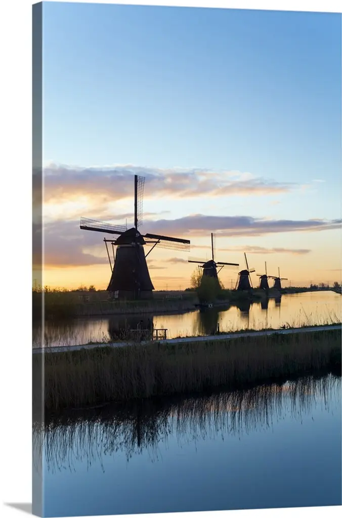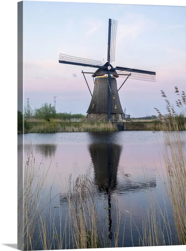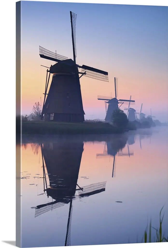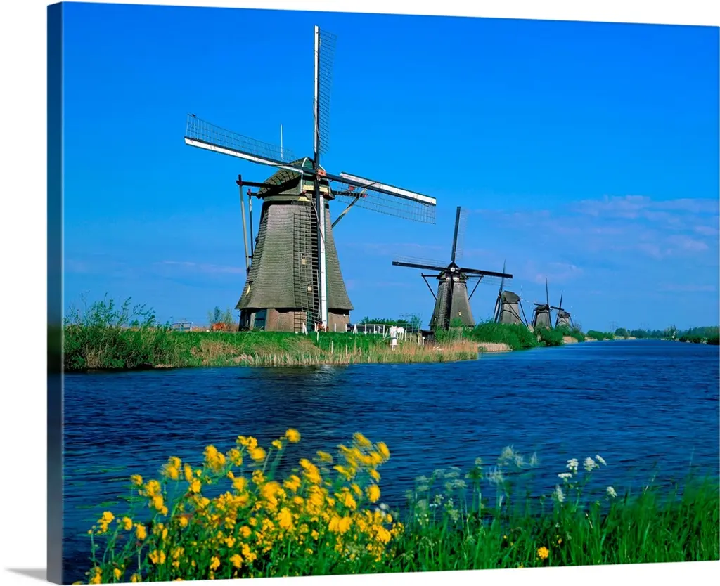 Netherlands, North Holland, Tulips In Fields Around Het Zand, Windmill In Distance