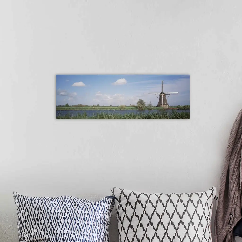 Netherlands, Traditional windmill in the village wall art for home and office decor. Discover canvas art prints, photos, mural, big canvas art and framed wall art in GreatBigCanvas.com's varied collections.