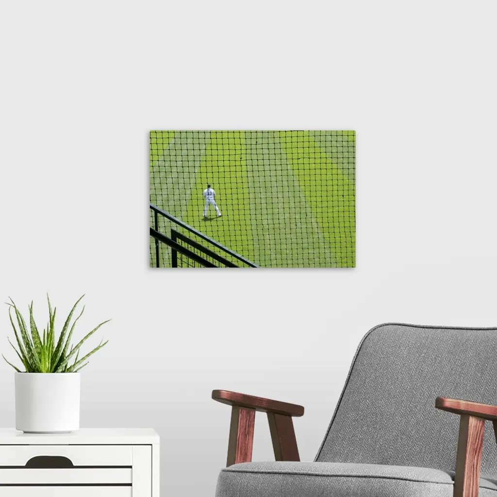 Netting with baseball player on green grass. wall art for home and office decor. Discover canvas art prints, photos, mural, big canvas art and framed wall art in GreatBigCanvas.com's varied collections.