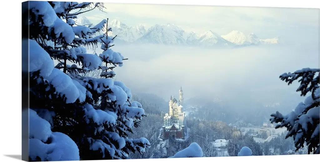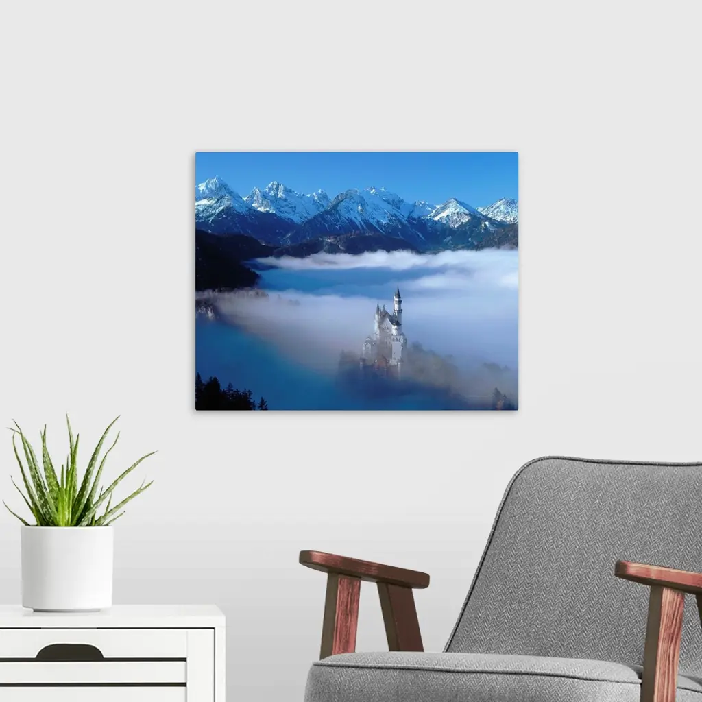 Neuschwanstein Castle Surrounded In Fog wall art for home and office decor. Discover canvas art prints, photos, mural, big canvas art and framed wall art in GreatBigCanvas.com's varied collections.