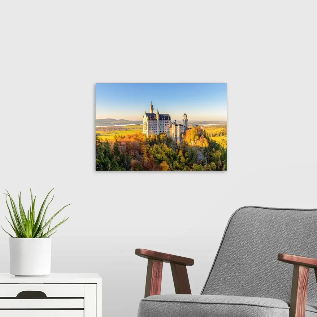 Neuschwanstein Castle Viewed From Marienbrucke, At Sunset, Schwangau, Bavaria, Germany