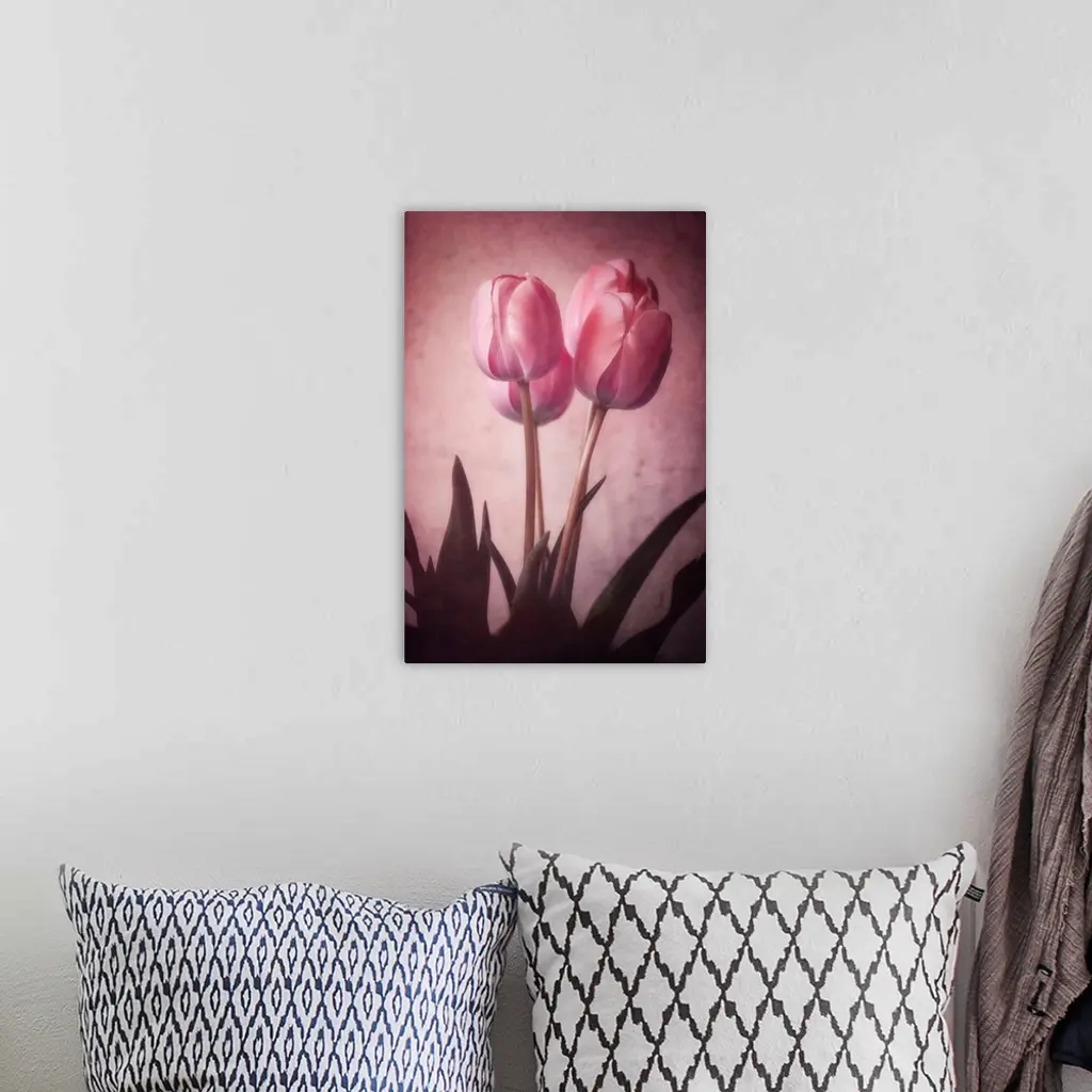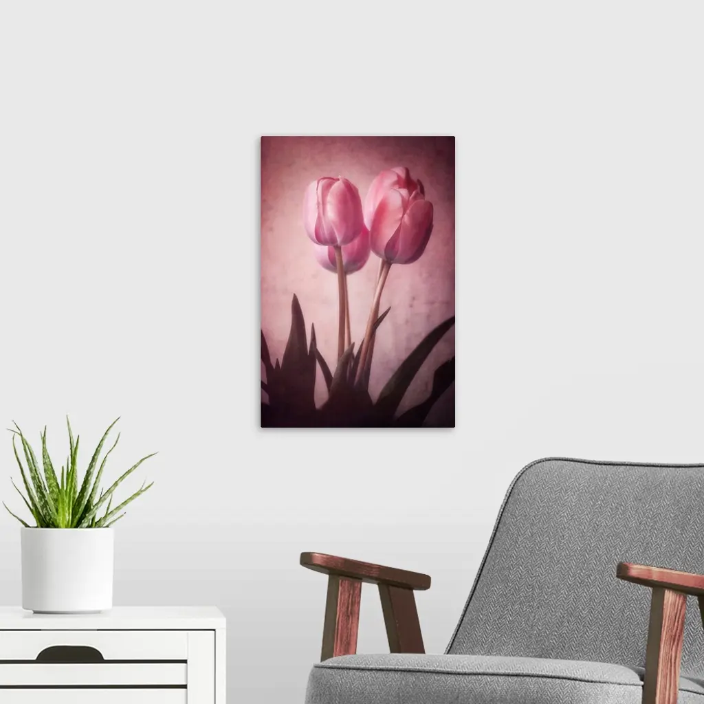 Tulips close-up with a photo texture