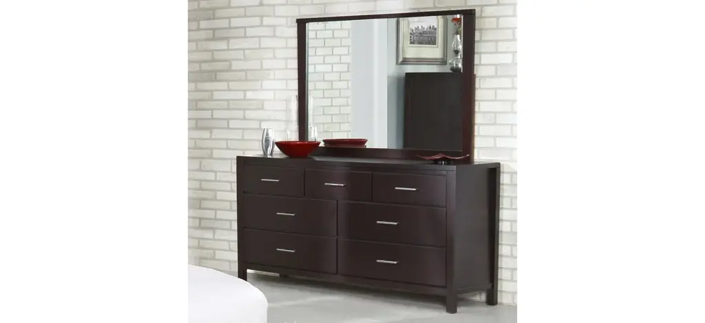 Crafted from Tropical Mahogany solids and a variety of beautiful veneers, the Nevis Mirror features solid wood drawer boxes with English dovetail joints on both front and back, full extension ball bearing drawer glides, and are corner blocked to ensure rigidity, making them as functional as they are sleek.