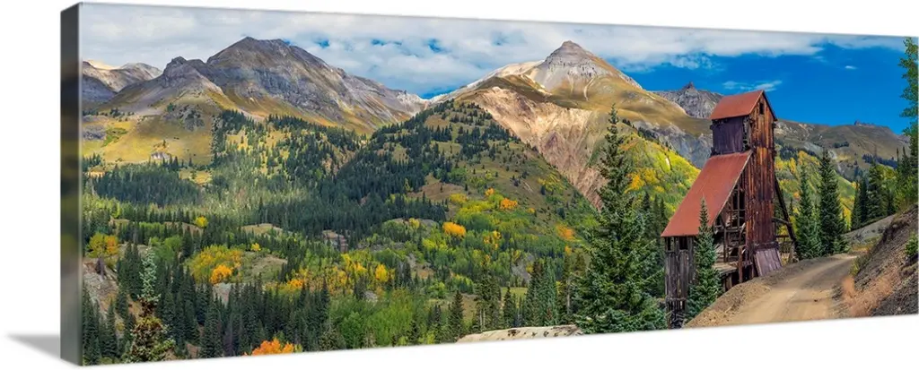 Panoramic image of a red roofed covered bridge spanning a calm tree lined river.