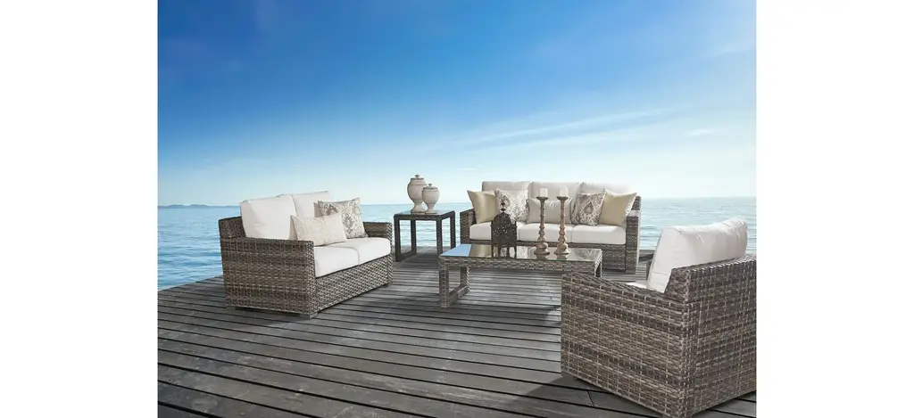 Create a luxurious outdoor get away with the New Java Outdoor Loveseat. Featuring neutral coloring and Contemporary Style, this outdoor patio furniture will create the perfect place to enjoy the summer!