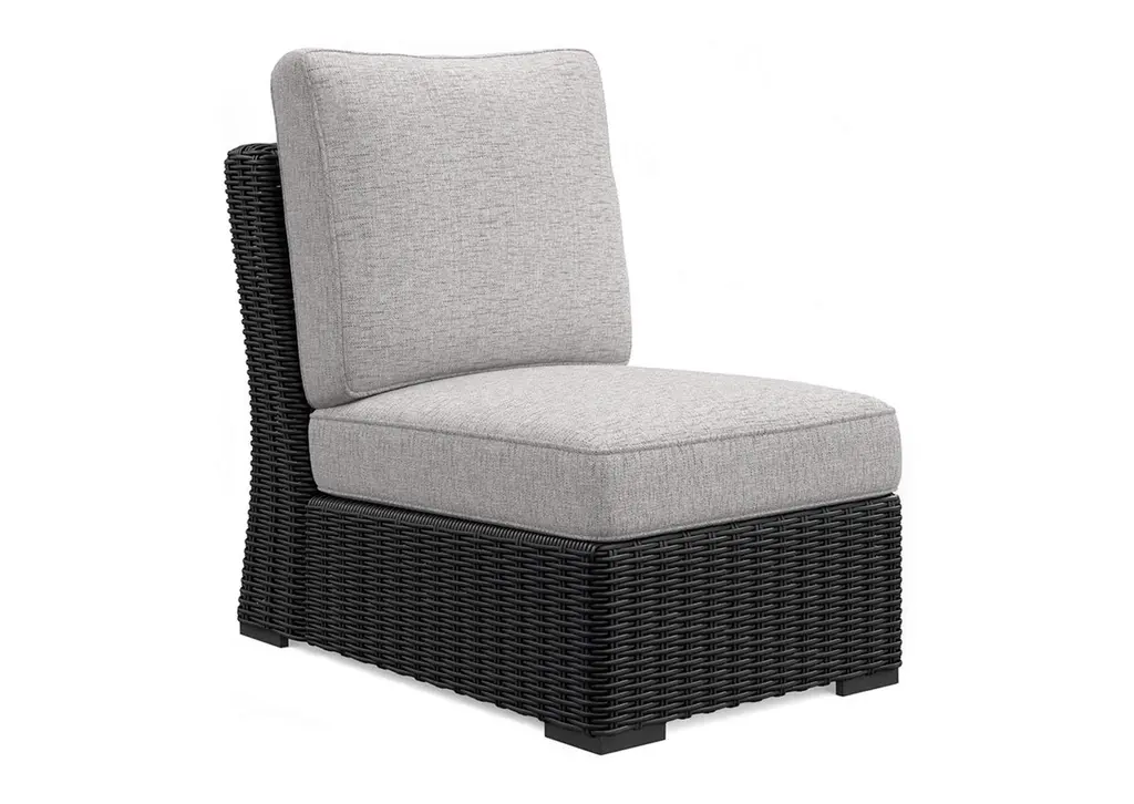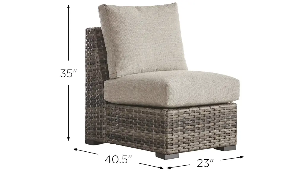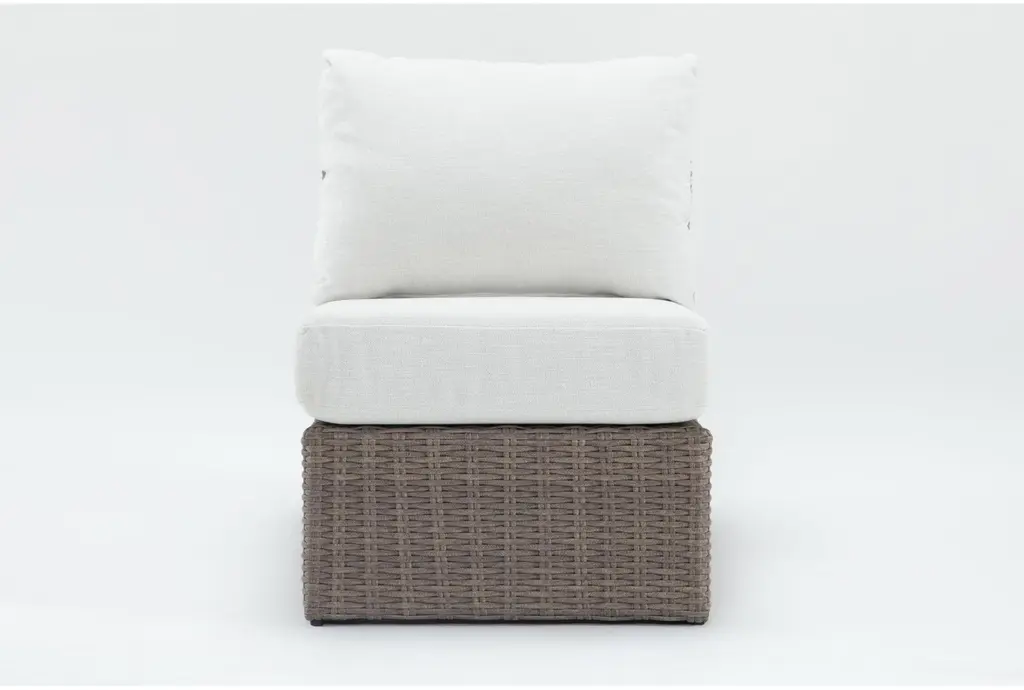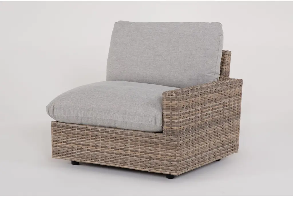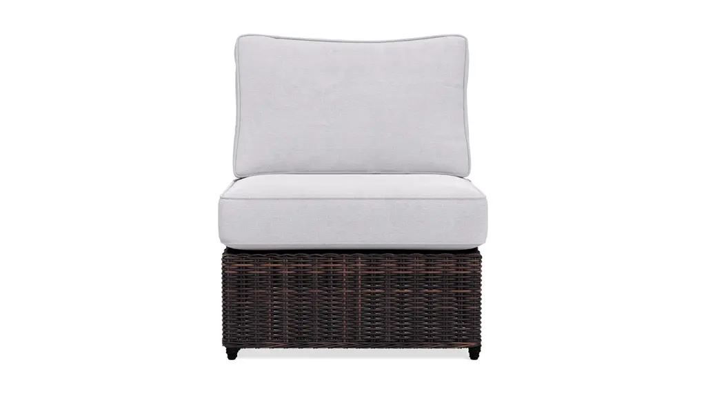The New Java Sectional Armless features uniquely textured, woven wicker. With it's durable construction this piece is ideal for outdoor living in style. With wide, flat wicker and squared shaping this outdoor sectional embodies Contemporary Chic styling. Handwoven wicker over fully-welded powder-coated aluminum framing. Mold And mildew resistant cushion cores are made with layered, high density polyfiber and a dry conjugate blend.