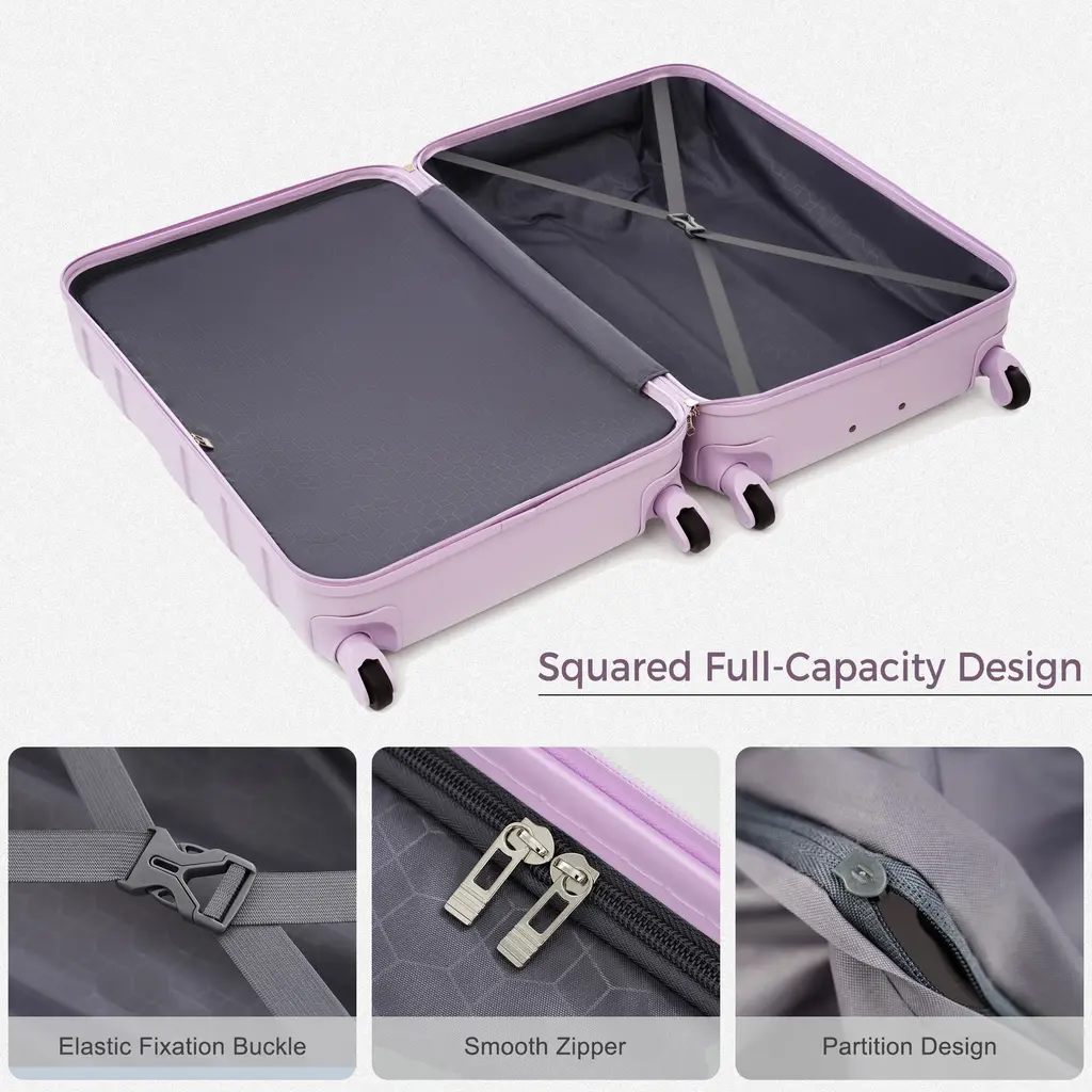 New Model Abs Hardshell 3 Piece Luggage Sets, Lightweight Durable Suitcase With Spinner Wheels And Tsa Lock, For Travel - Purple