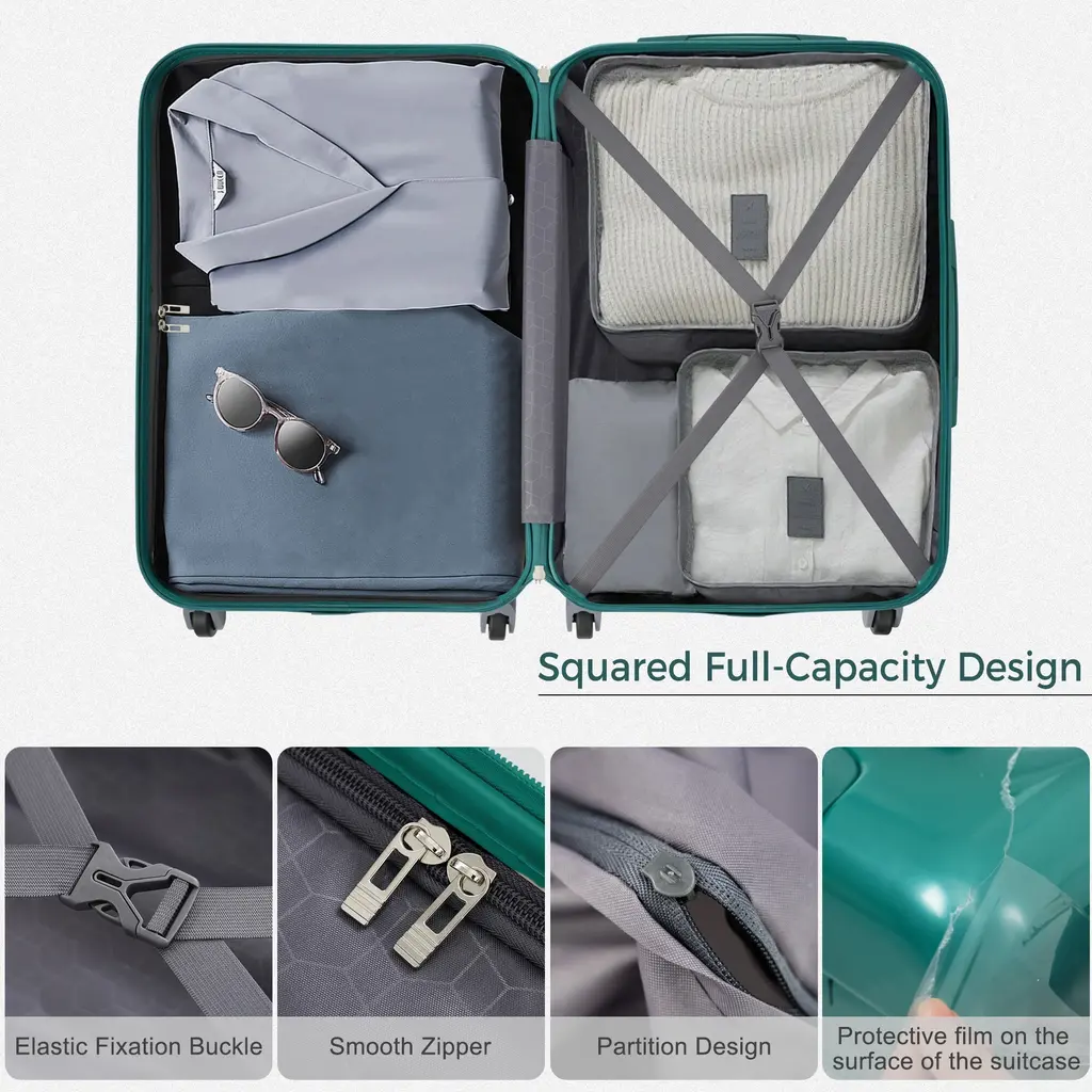 The set includes a 20" carry-on suitable for cabin use, all equipped with a side-mounted TSA lock for secure travel. The interior offers mesh pockets and tie-down straps to keep your belongings neatly organized and safely packed.Features:Quick Glance Points: