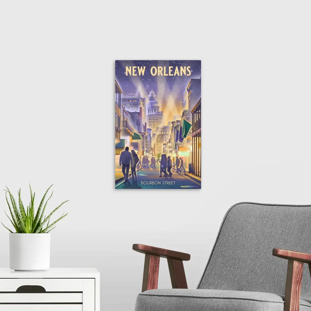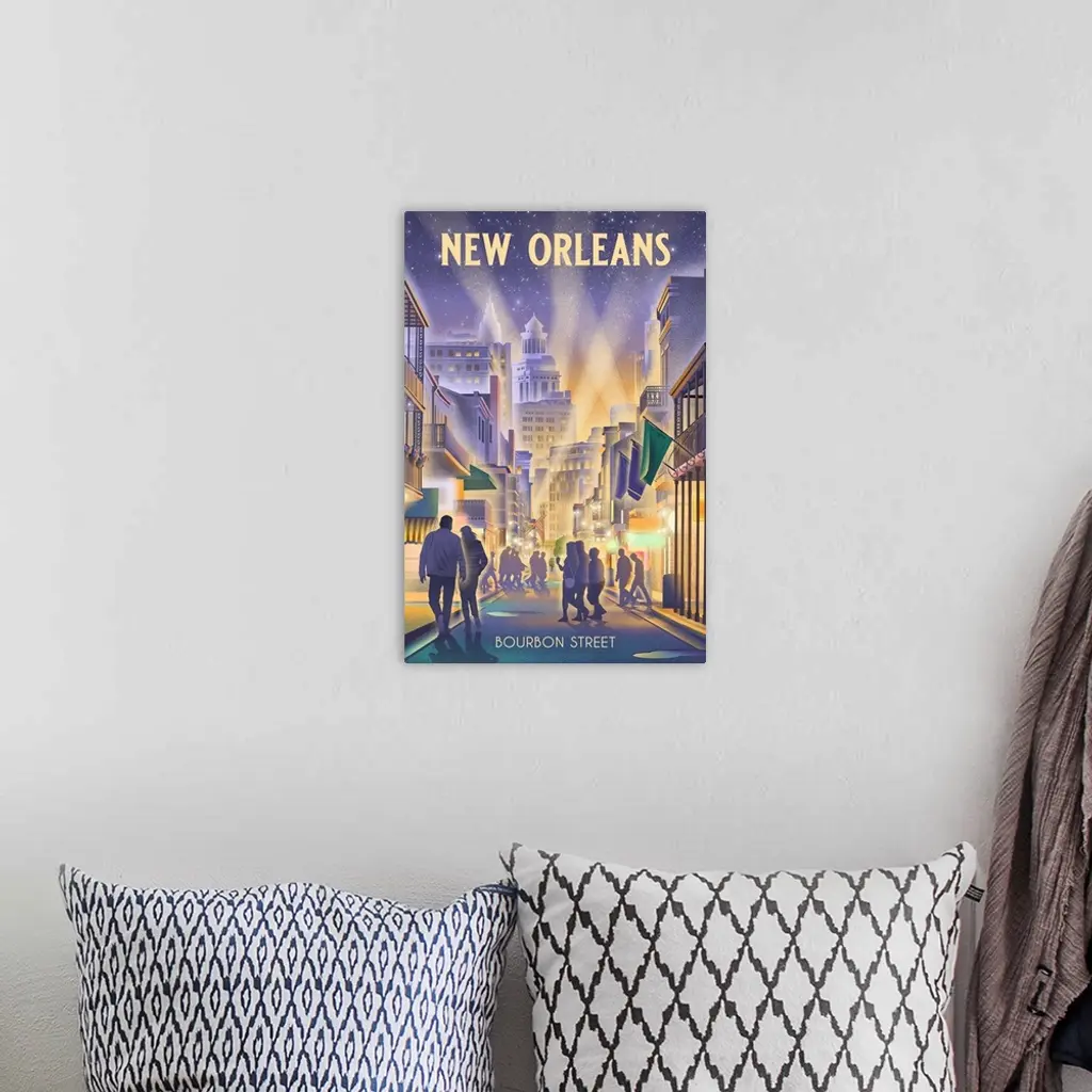 New Orleans, Louisiana - Lithograph - City Series - Bourbon Street wall art for home and office decor. Discover canvas art prints, photos, mural, big canvas art and framed wall art in GreatBigCanvas.com's varied collections.