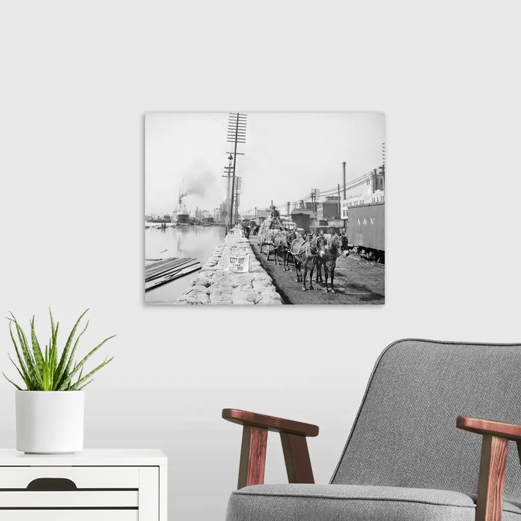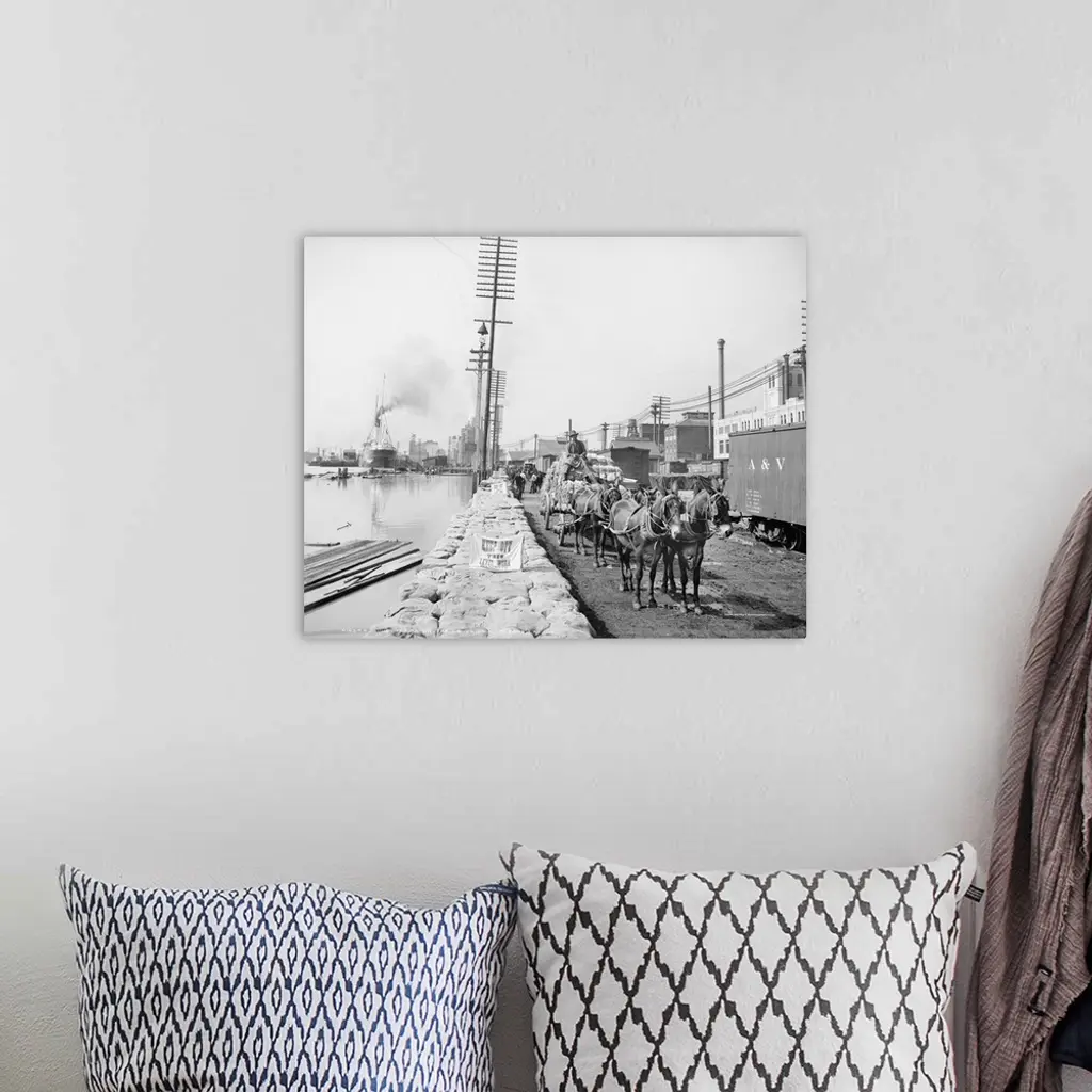 New Orleans, Mule Team. A Mule Team Pulling A Cartload Of Baled Cotton On the Levee In New Orleans, Louisiana. Photographed C1903.